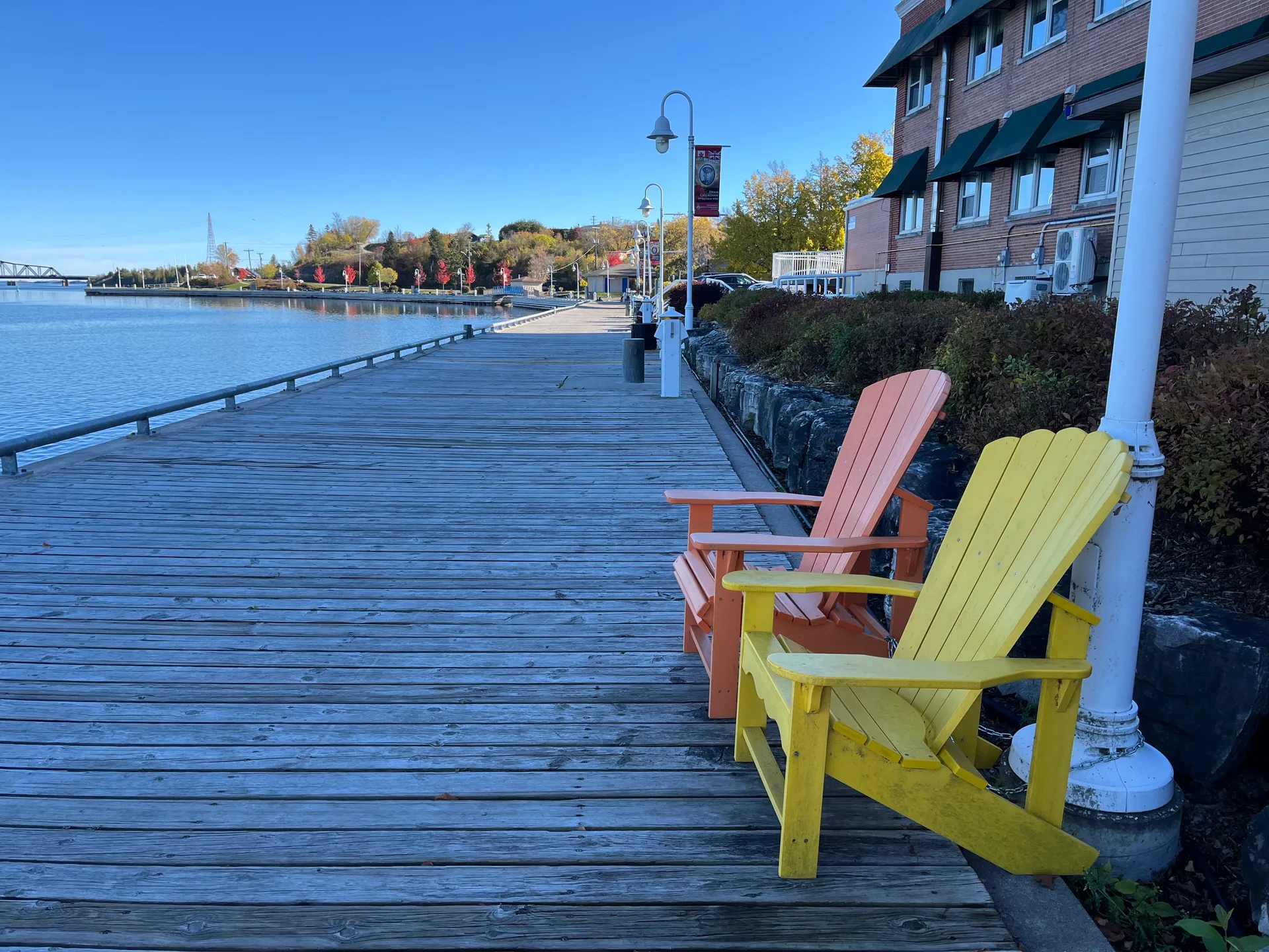 In Kanada sitzt man gerne bequem. Es hat sich ein unschlagbares Design durchgesetzt das in leichten Variationen überall aufzufinden ist. Egal ob am Pier von Halifax, Parkplätzen, Aussichtspunkten oder auch mal einem Gipfel. Meistens in zweier Paaren, mal über dimensioniert, mal als Puffin, mal mit Tisch, aber immer in bunten Farben.