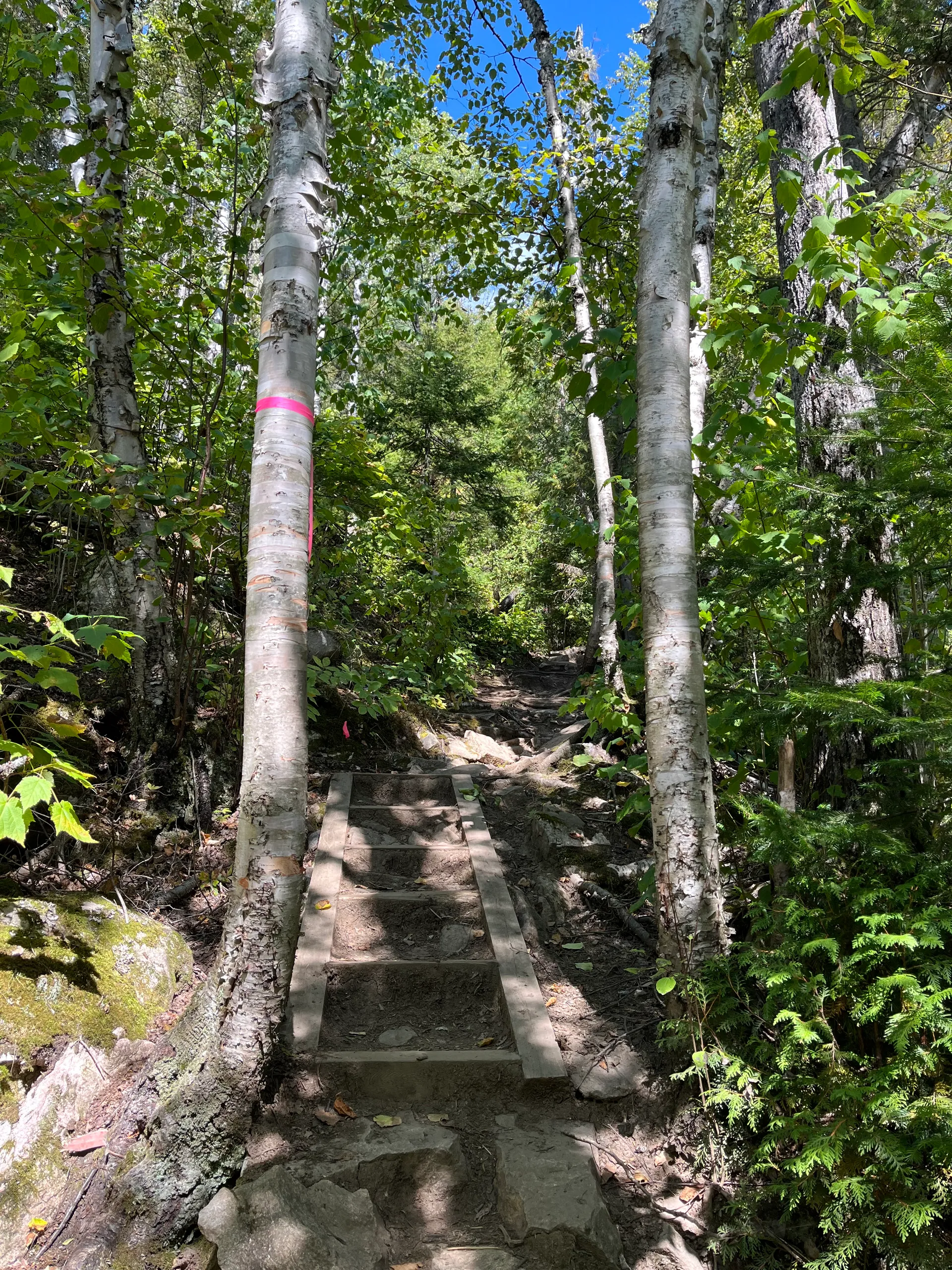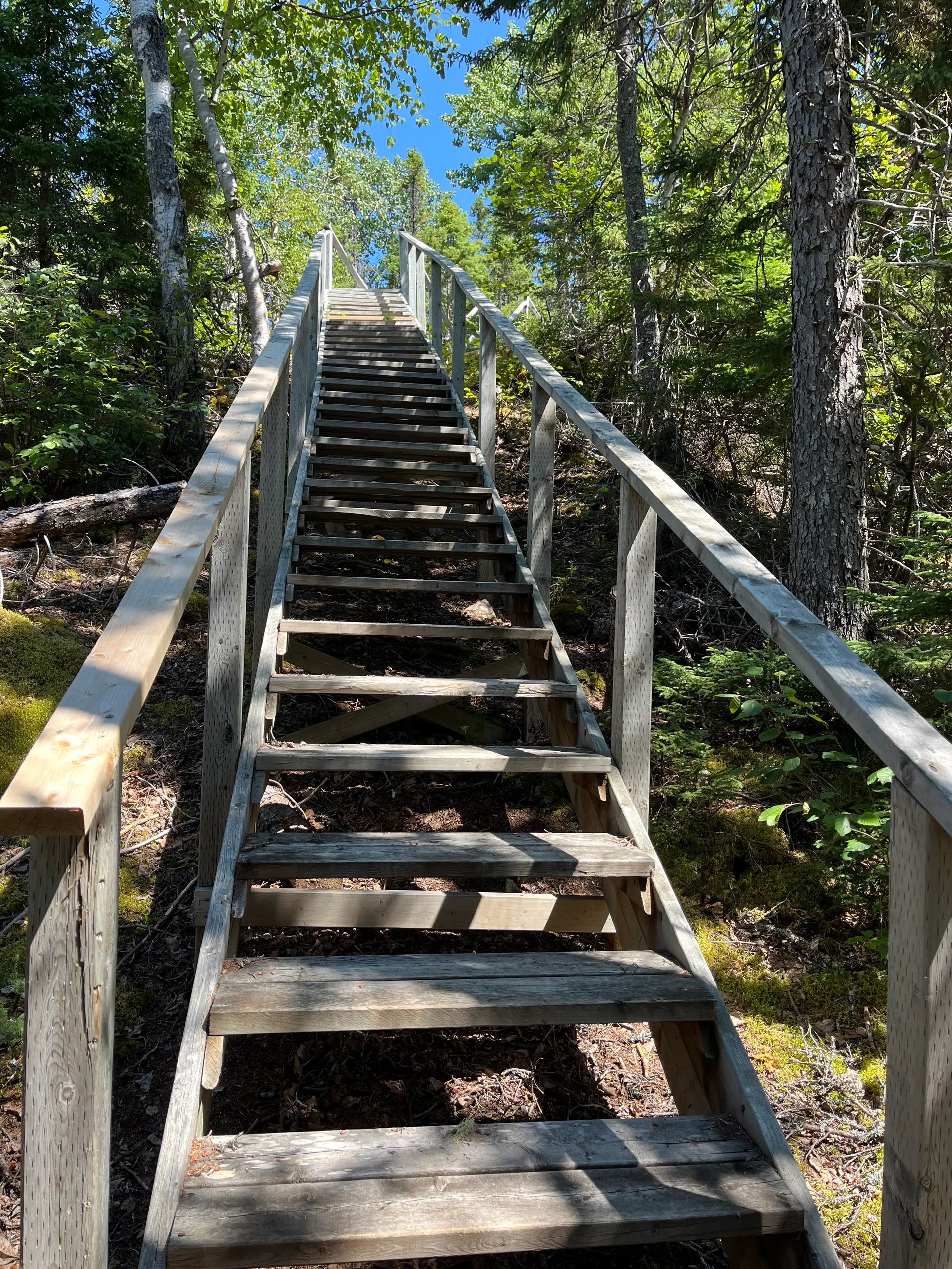 Es ist vollkommen egal, wo wir sind: Überall in Kanada gibt es Treppen. Auf den Wanderwegen hat das den großen Vorteil, dass die Vegetation geschützt wird und sich nicht ein halbes Dutzend Pfade bildet.