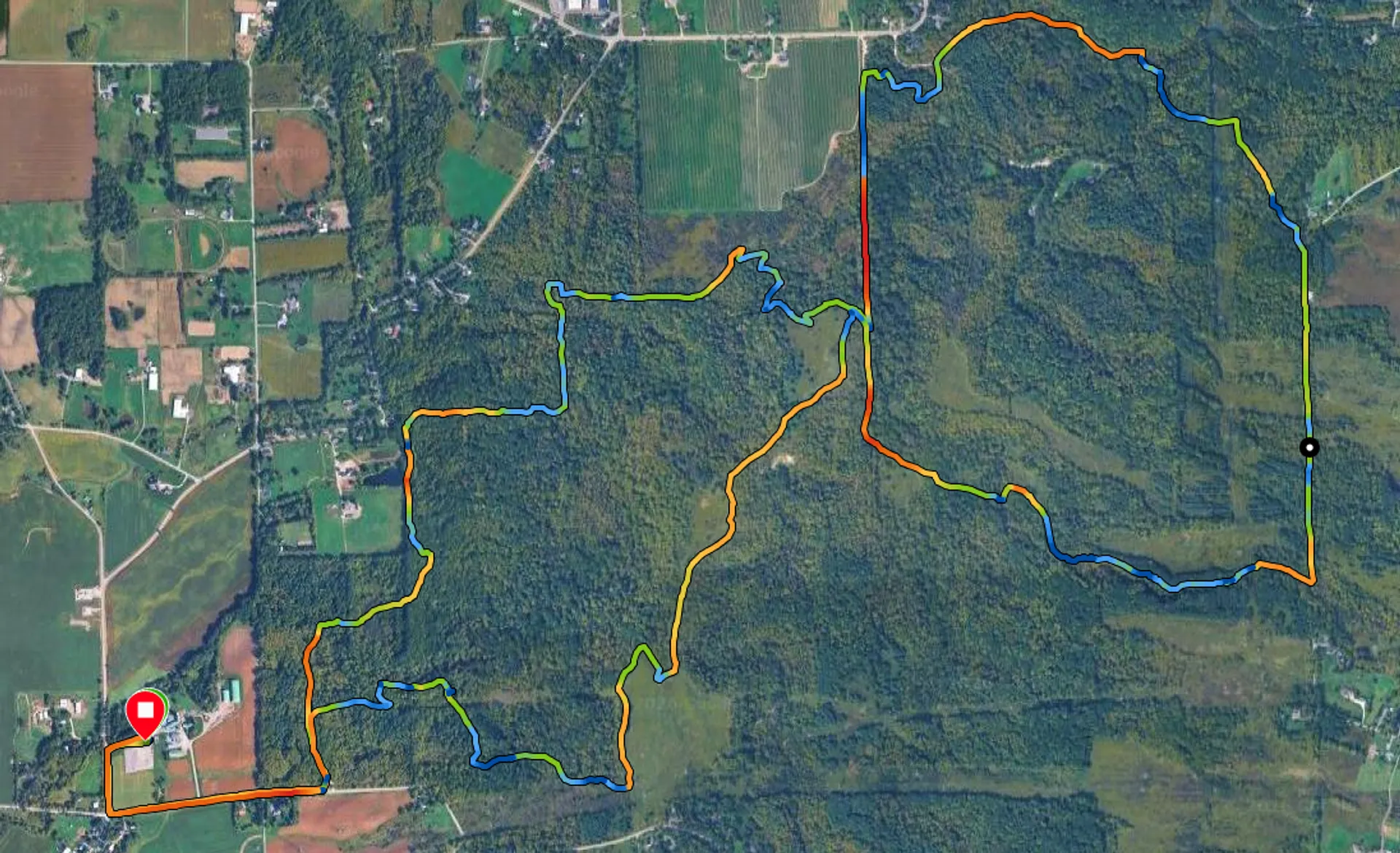 Mein Ausgangspunkt war die White Meadow Farm, eine Ahornsirup-Farm, bei der wir auf dem Parkplatz übernachten können. Alternativ eignet sich auch der Parkplatz an der Roland Road (Short Hills Parking Lot B); dann ist die Runde 1,8 km kürzer.