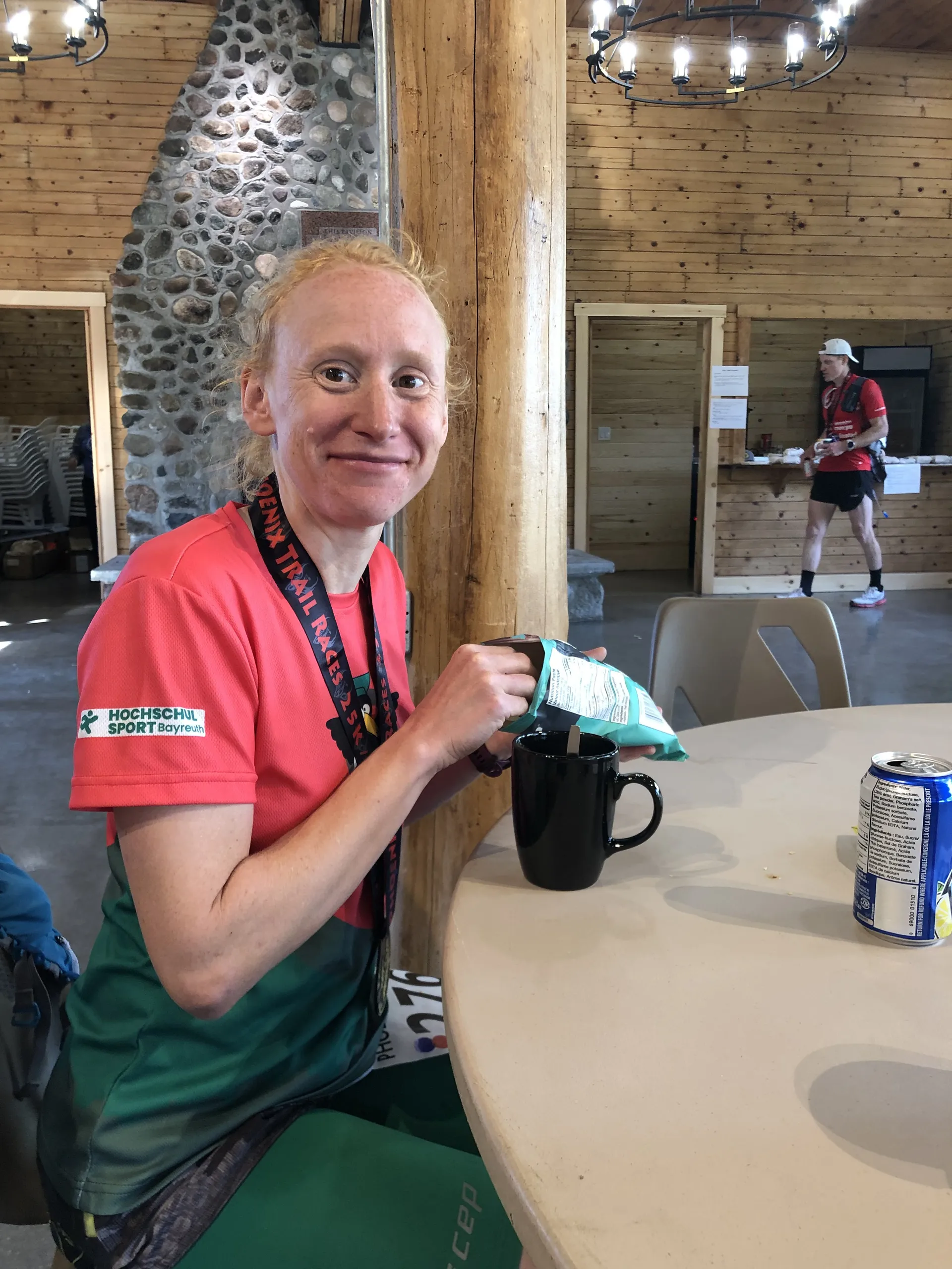 Im Ziel gibt es erst einmal Suppe, Chips und belegte Brote zum Aufpäppeln. Leider bleiben nicht viele der Läuferinnen und Läufer noch dort, und so wird es schnell ziemlich leer im Zielbereich.