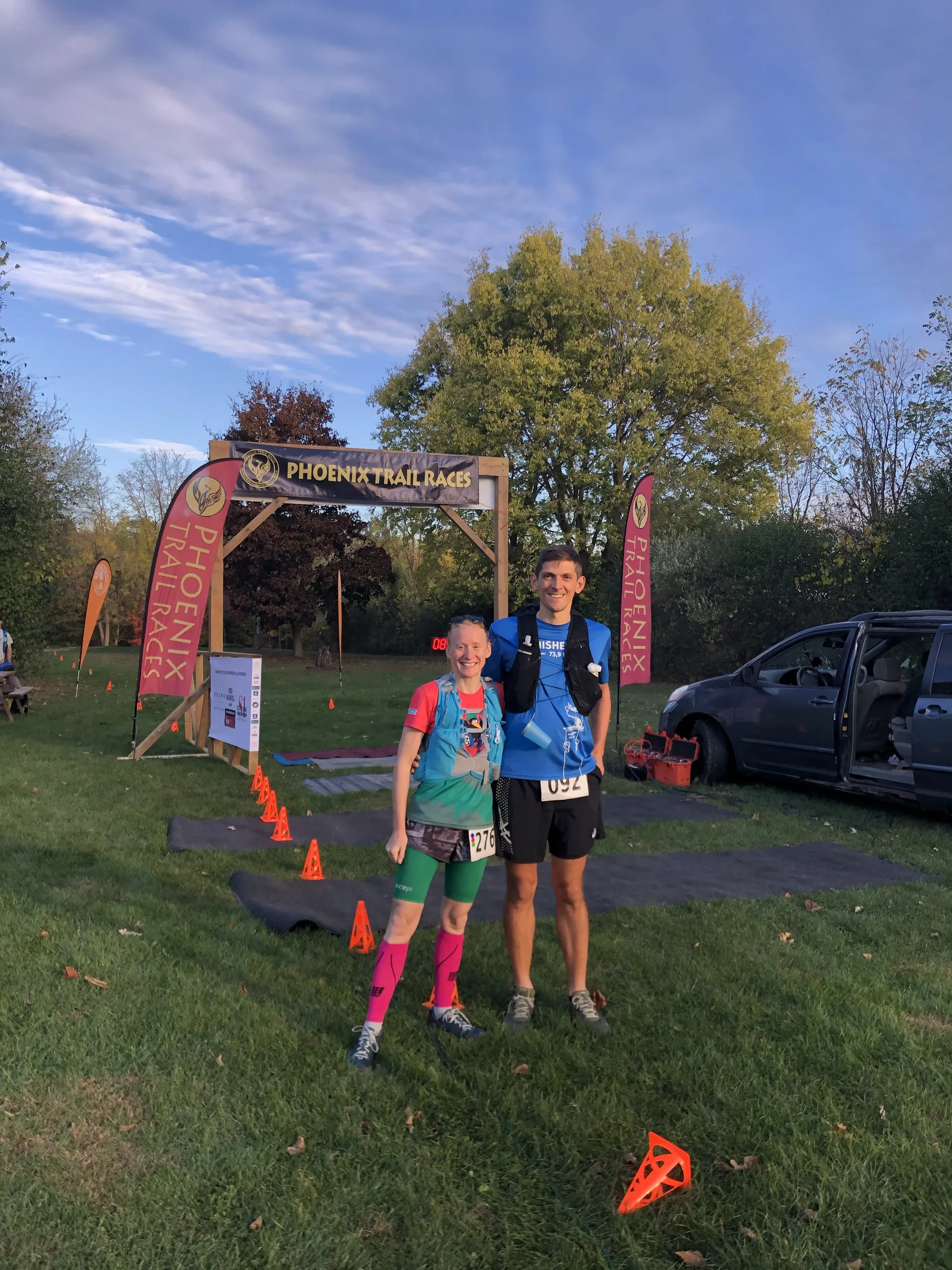 Als uns klar wurde, dass das mit den Paketen wohl noch etwas länger dauern wird, haben wir uns nach Läufen in der Gegend zwischen Detroit und Hamilton umgeschaut. Dabei sind wir auf das Phoenix Trail Race gestoßen. Der Lauf war zwar schon ausverkauft, aber wir haben uns auf die Warteliste setzen lassen. Alle Startplätze, die frei werden, gehen an die Leute auf der Liste – und wer sich am schnellsten registriert, bekommt den Platz. Nach ein paar Versuchen schaffen wir es tatsächlich beide, einen Startplatz zu ergattern.