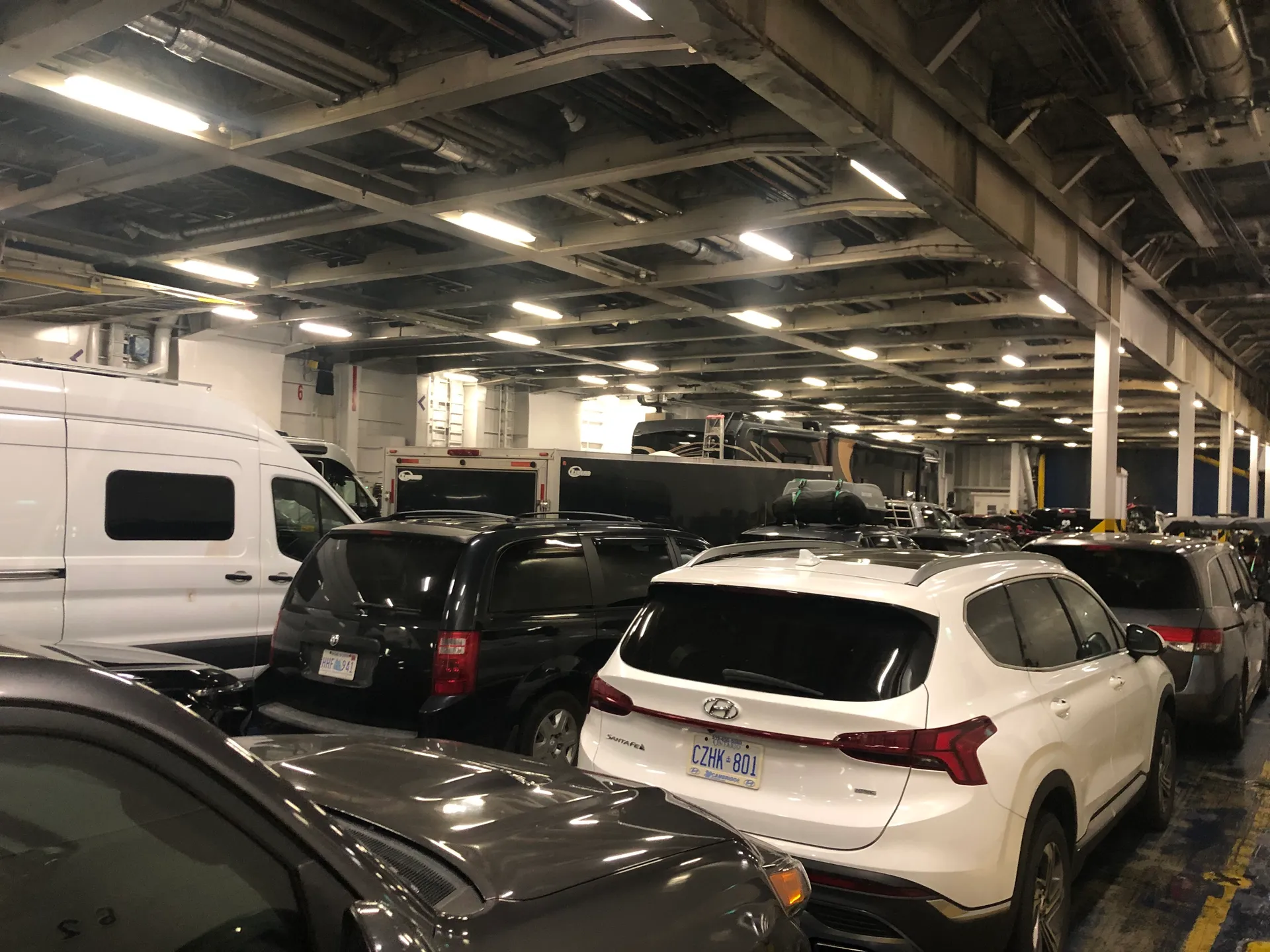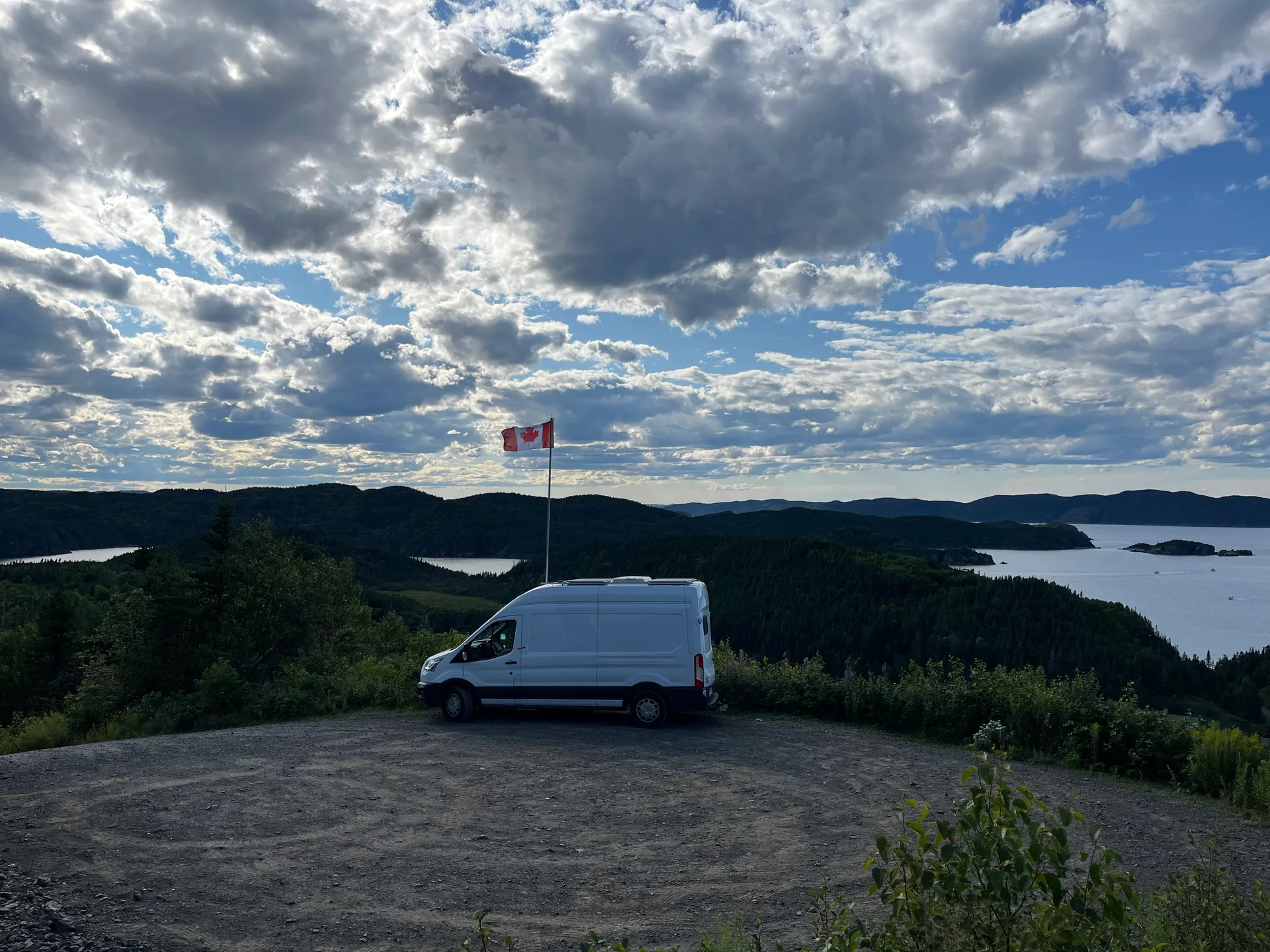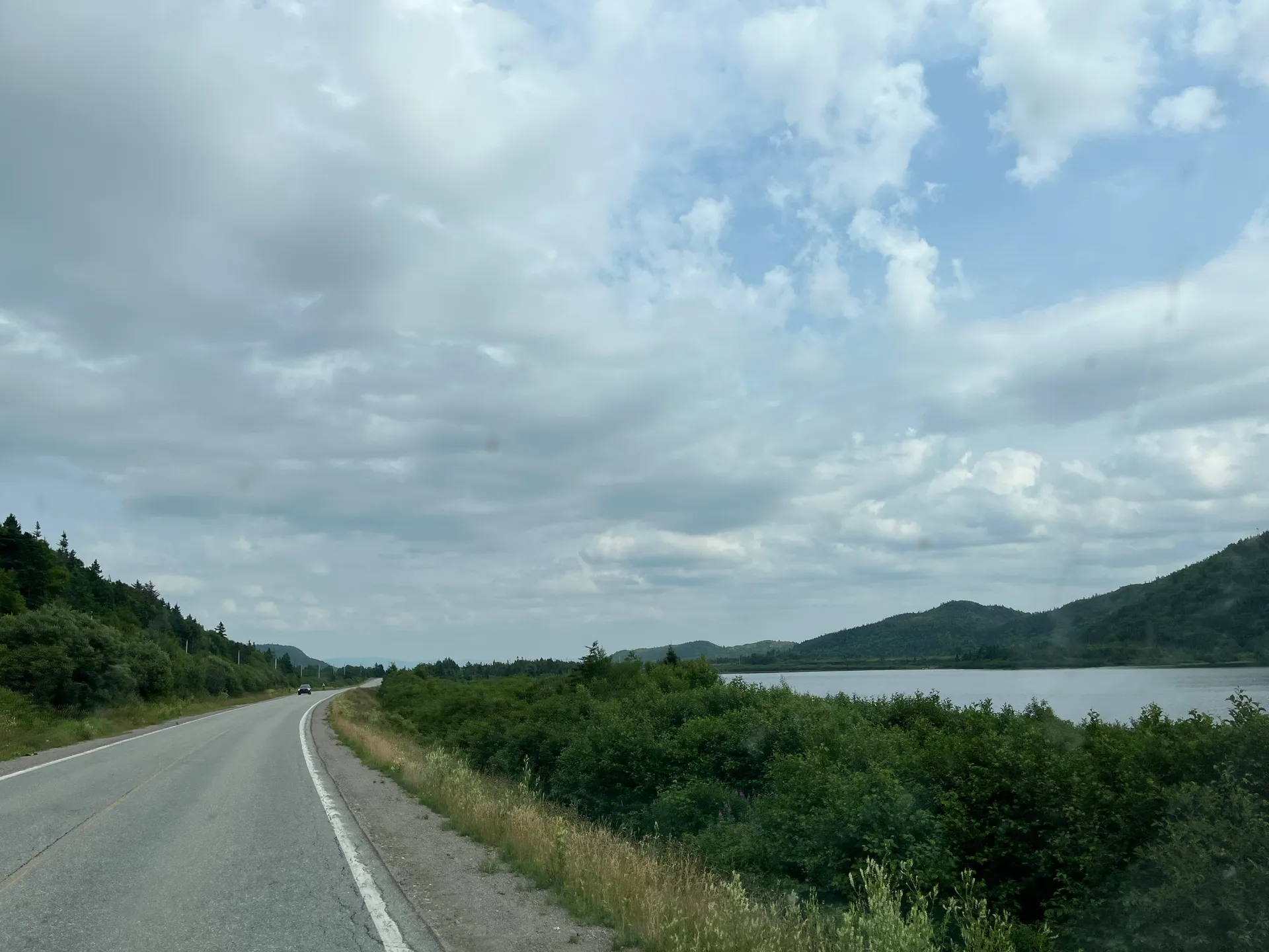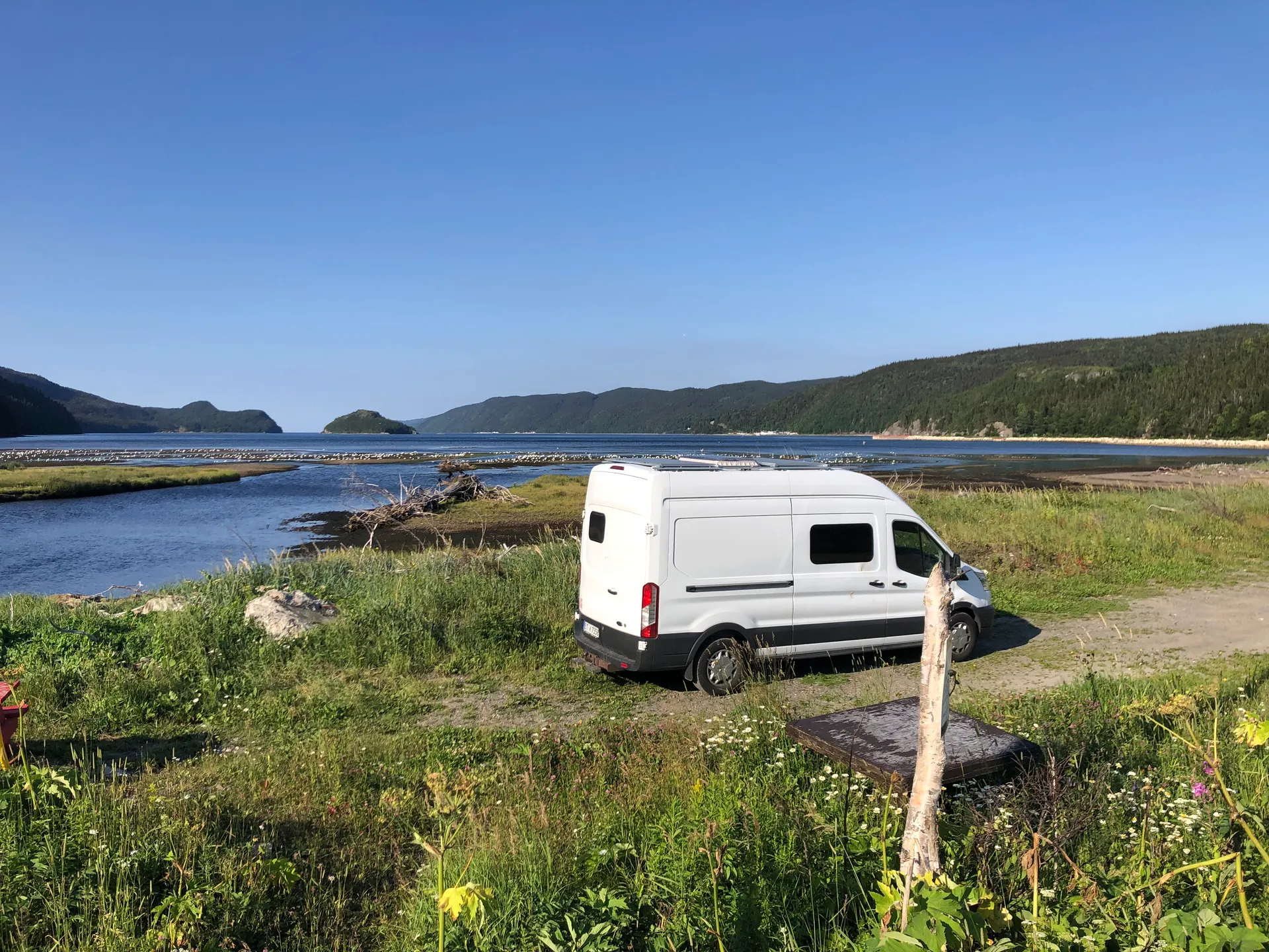 Uns wird mal wieder bewusst, dass Ferien sind. Die Fähren von Sydney Nord, Nova Scotia nach Port aux Basques, Newfoundland sind komplett ausgebucht. Anscheinend muss man im Frühjahr buchen, um seine Wunschzeit und eine Kabine zu bekommen. Letztere wollen wir eh nicht, und terminlich sind wir auch flexibel – nur irgendwann bis Ende Juli wäre schon schön. Nach mehreren Dutzend Versuchen schaffen wir es, einen anscheinend stornierten Platz zu bekommen. Wir haben zwei Sitzplätze auf der Nachtfähre, Abfahrt: 23 Uhr, Ankunft: 7 Uhr. Vor der Abfahrt haben wir am Indian Beach die Zeit überbrückt. Irgendwann haben dort drei Männer angefangen, Rock- und Countrymusik zu spielen. Scheint ein wöchentliches Event zu sein, da wenig später die Fans in ihren Autos kamen. Die sind nur nicht ausgestiegen. Wenn der Wind zu kalt ist, bleiben einfach alle im Auto sitzen – was wohl auch erklärt, warum die Boxen etwas übersteuert waren. Aber ein schöner Abschied von Nova Scotia. Die Fähre landet in Port aux Basques an. Das ist der südlichste Punkt von Neufundland. Es gibt auch eine Verbindung nach Argentia weiter im Osten – wäre auch eine Option, wenn man dort beginnen möchte und dann nach Westen fährt. Egal welche Verbindung, es gilt: so früh wie möglich buchen, vor allem in der Urlaubssaison oder wenn man in einer Kabine schlafen möchte. Zumindest konnte man die Sitze nach hinten kippen, und es war nicht eiskalt. Ich kann ja eh überall schlafen, Simon eher nicht so.