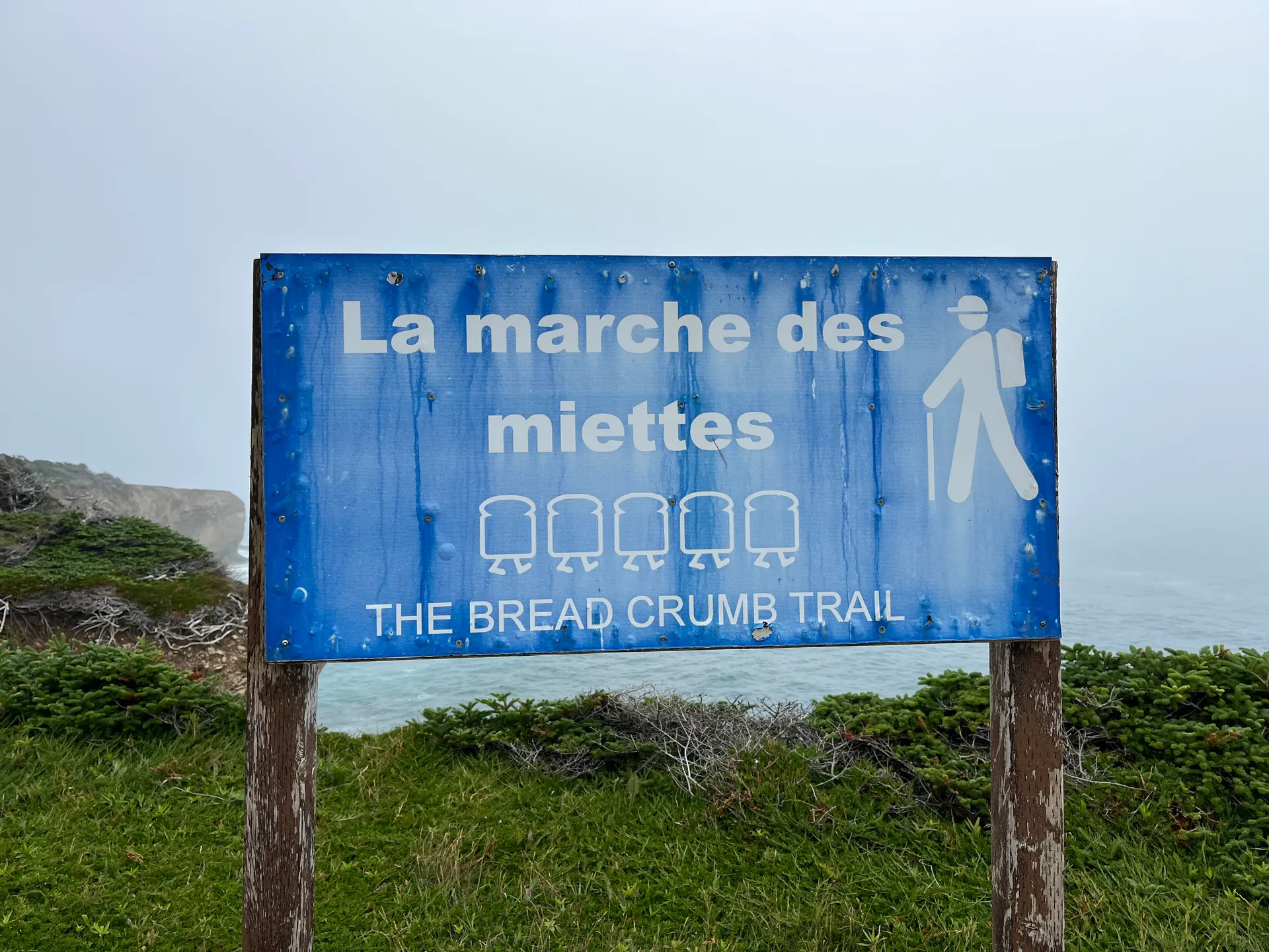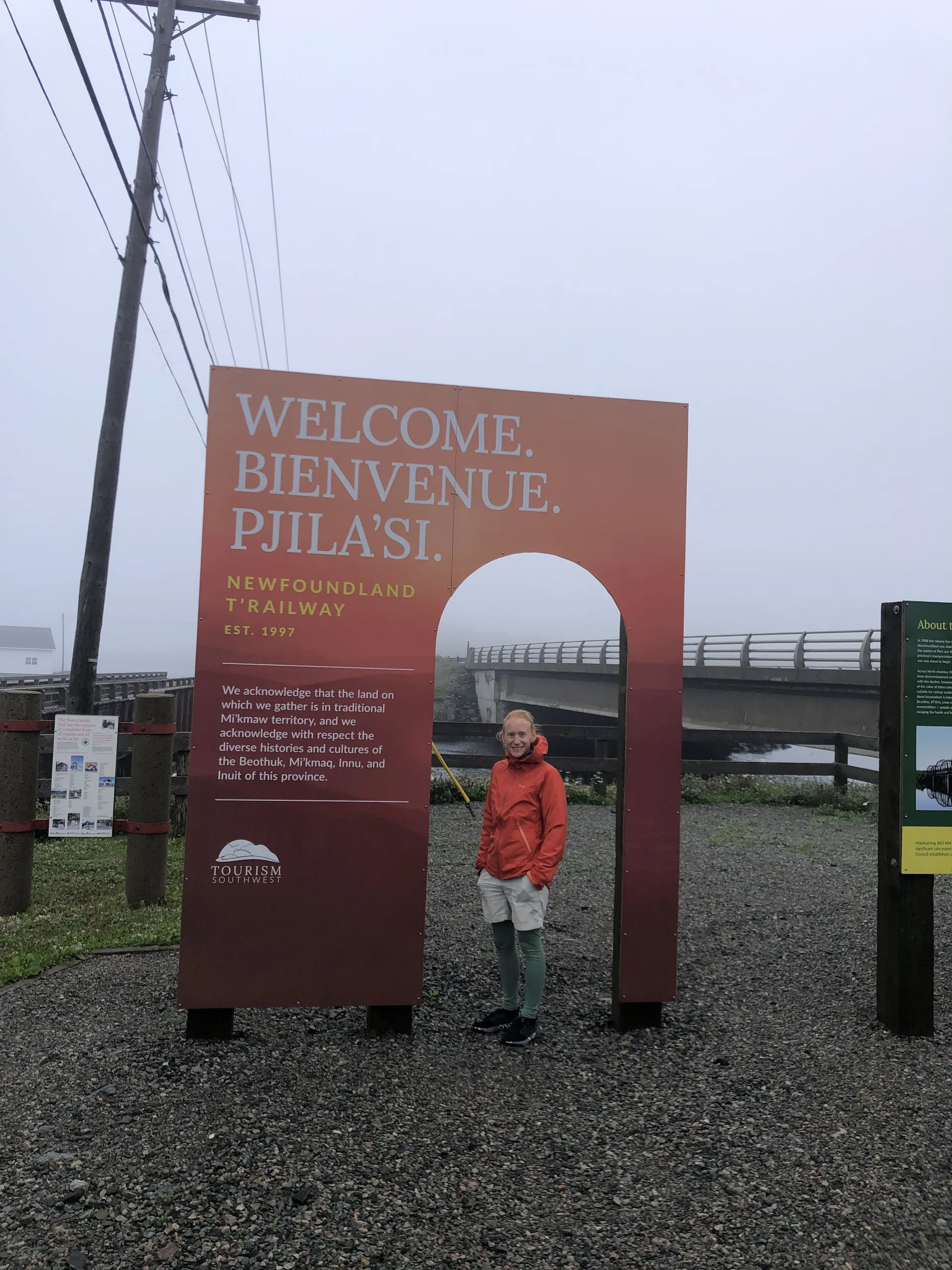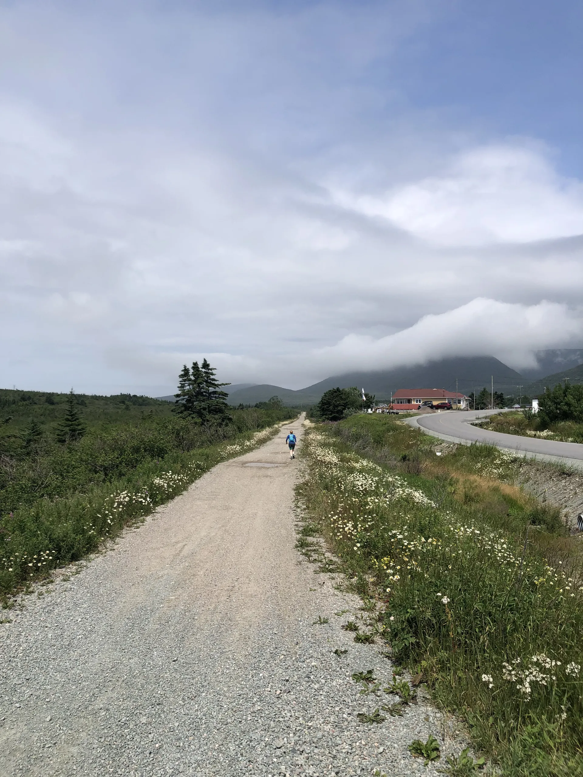 Wir kommen also ziemlich früh bei dichtem Nebel, etwas verschlafen, in Neufundland an. Gefühlt die Hälfte der Autos vom Schiff fährt zum Tim Hortons Drive-in, Kaffee tanken. Wir nehmen den Parkplatz von der Touristeninformation. Erste Überraschung: Es gab mal einen Zug auf der Insel, der bis ganz in den Osten nach St. John’s führte. Nicht so überraschend: Er wurde eingestellt. Heute ist die Route als ATV-Strecke umfunktioniert – was ja nicht heißt, dass man sie nicht laufen könnte. Nach einem Frühstück am Strand kommt die Sonne doch noch raus. Ich lasse mich von Simon in Cape Ray rausschmeißen und laufe den T’Rail bis kurz vor Saint Andrew’s, wo er mich wieder einsammelt. Fußgänger sind tatsächlich eher selten und ATVs deutlich in der Überzahl. 16 flache Kilometer stehen am Ende auf der Uhr. Der teils knöcheltiefe Schotter entschädigt für die fehlenden Höhenmeter.