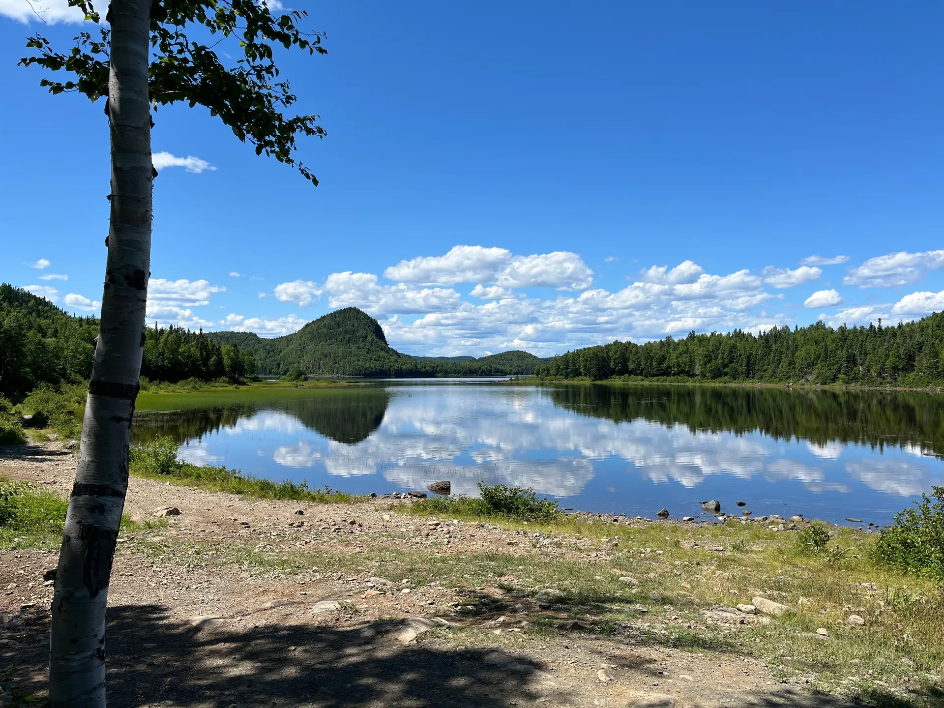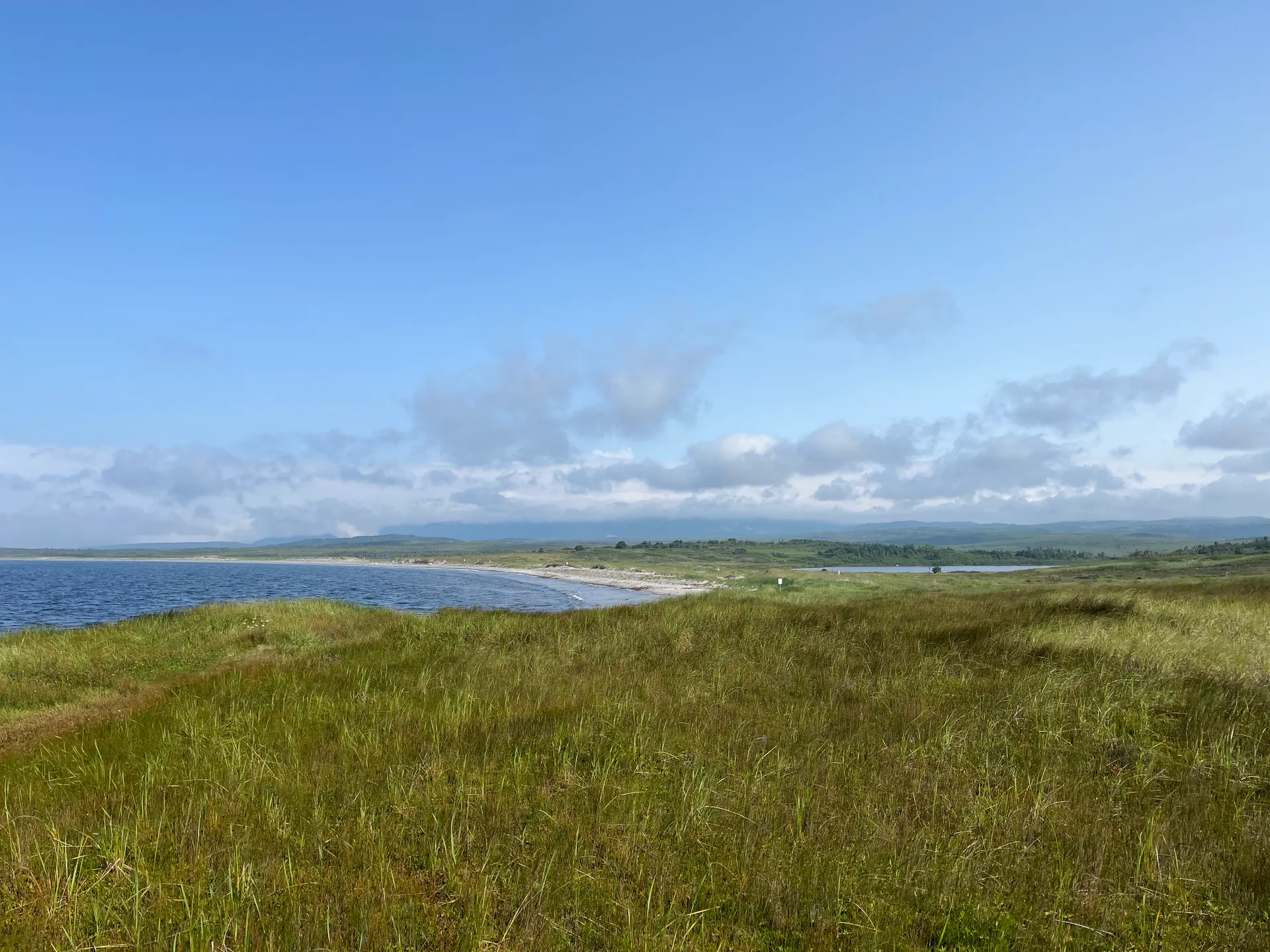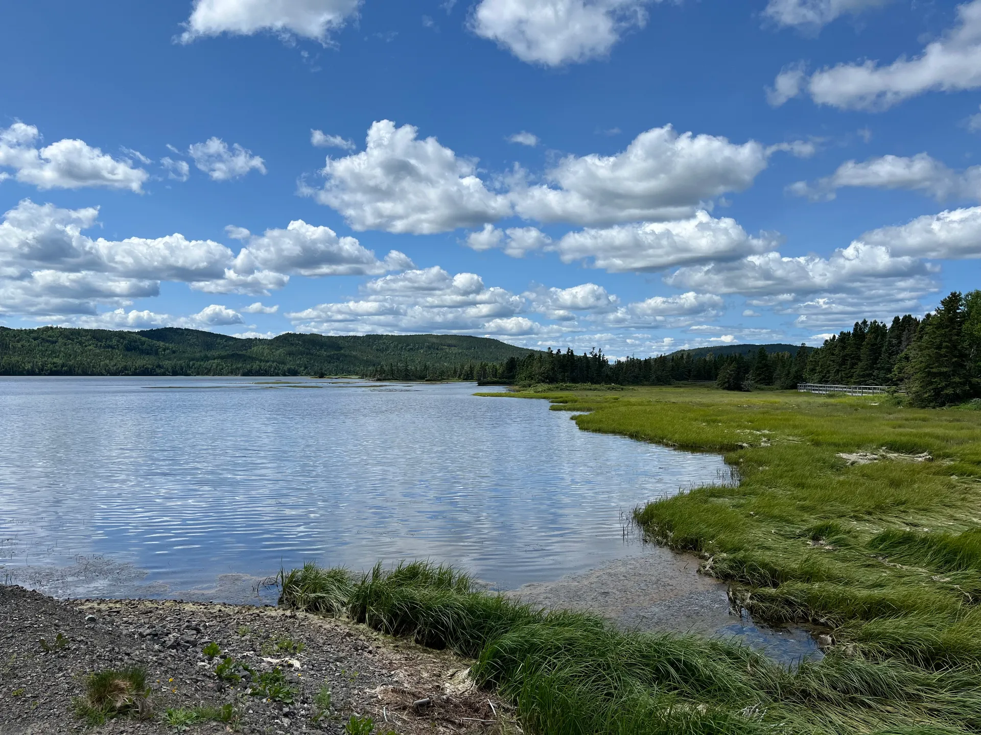 Wir kommen also ziemlich früh bei dichtem Nebel, etwas verschlafen, in Neufundland an. Gefühlt die Hälfte der Autos vom Schiff fährt zum Tim Hortons Drive-in, Kaffee tanken. Wir nehmen den Parkplatz von der Touristeninformation. Erste Überraschung: Es gab mal einen Zug auf der Insel, der bis ganz in den Osten nach St. John’s führte. Nicht so überraschend: Er wurde eingestellt. Heute ist die Route als ATV-Strecke umfunktioniert – was ja nicht heißt, dass man sie nicht laufen könnte. Nach einem Frühstück am Strand kommt die Sonne doch noch raus. Ich lasse mich von Simon in Cape Ray rausschmeißen und laufe den T’Rail bis kurz vor Saint Andrew’s, wo er mich wieder einsammelt. Fußgänger sind tatsächlich eher selten und ATVs deutlich in der Überzahl. 16 flache Kilometer stehen am Ende auf der Uhr. Der teils knöcheltiefe Schotter entschädigt für die fehlenden Höhenmeter.