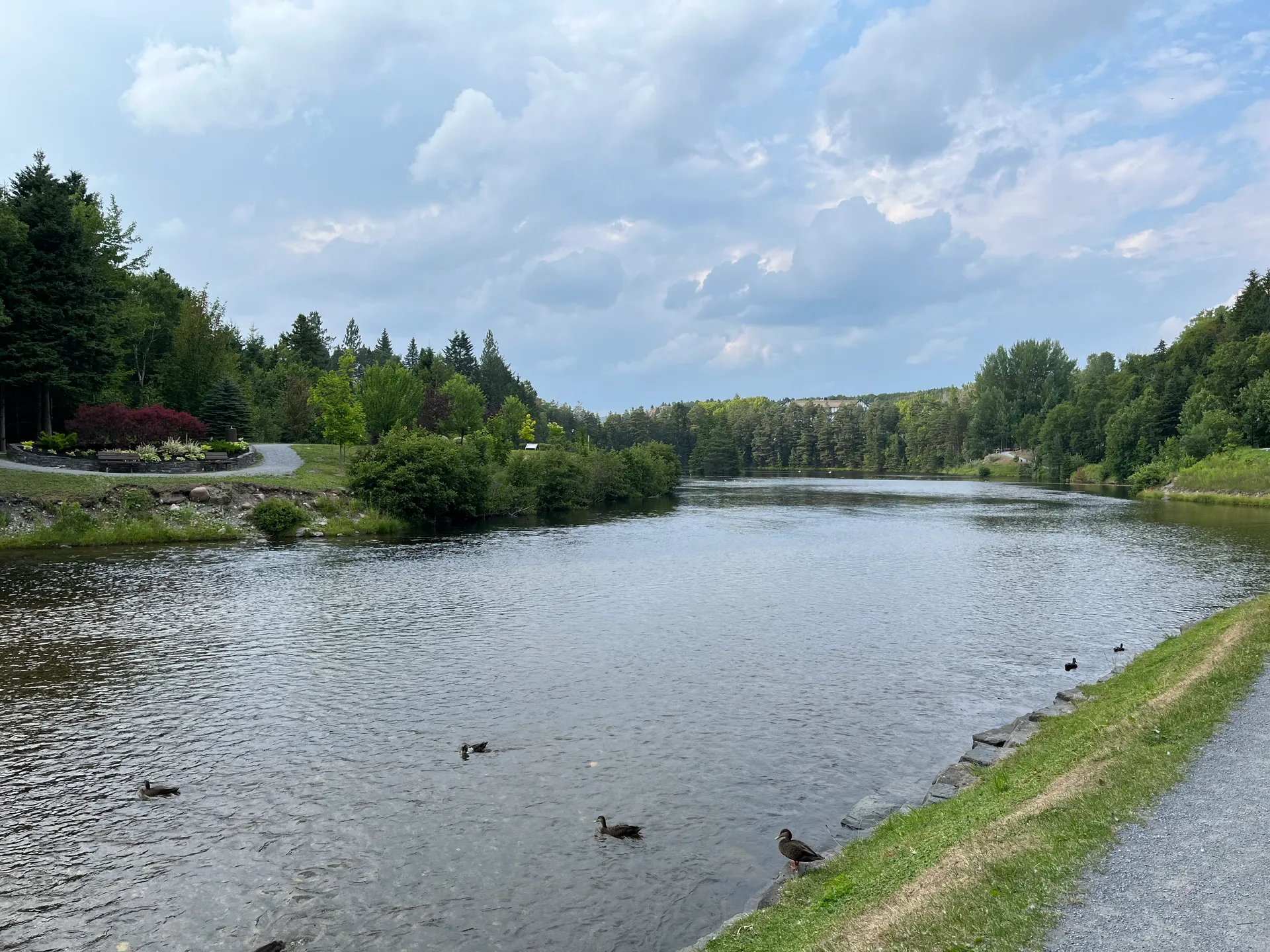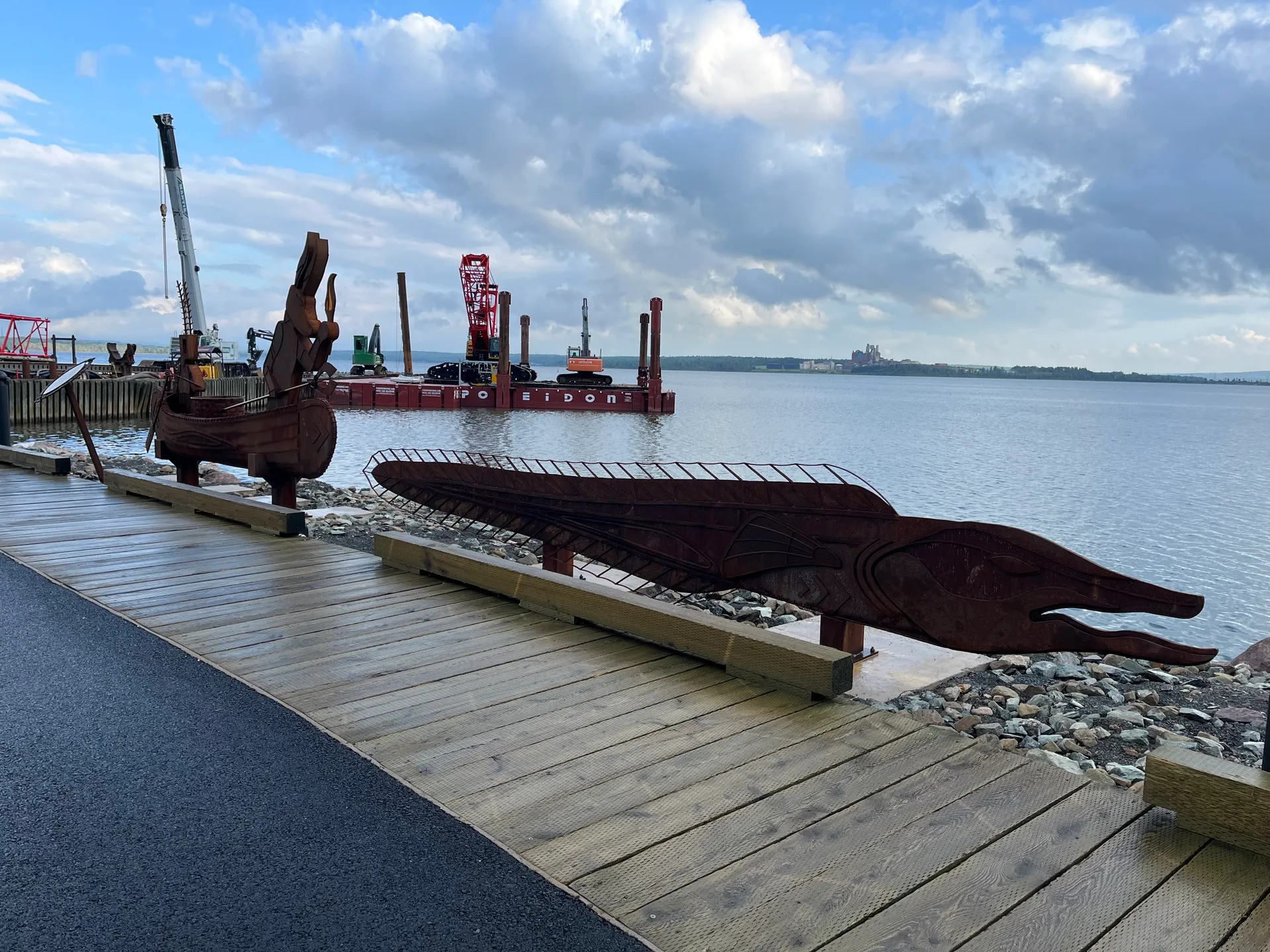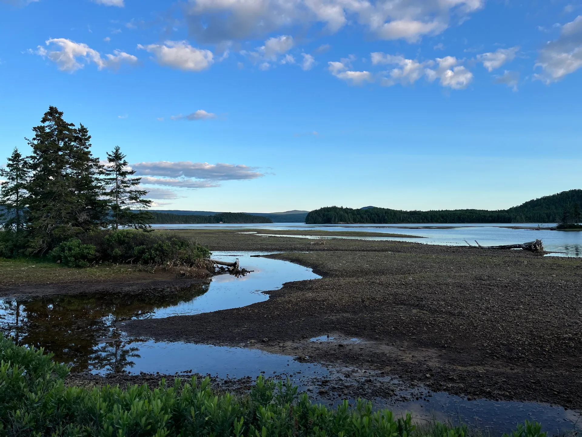 Deutschland braucht mehr Splash Pads! Öffentlich zugängliche Wasserspielplätze in Parks. Die gibt es hier in jeder größeren Stadt. Im Margaret Bowater Park in Corner Brook kann man sich auch wahlweise im Fluss erfrischen. Wir schlendern den ersten Abend in die Stadt auf der Suche nach einem Restaurant, um Fisch zu essen. Der etwas seltsame Typ, der uns auf der Straße anspricht, scheint etwas zu viel vom lokalen Craft Beer getrunken zu haben – aber über die Restaurants in Corner Brook weiß er Bescheid. Es gibt am Ende Fish and Chips und Fish Chowder, extrem lecker. Was auffällt, ist, dass es am Glynmill Pond überall Erinnerungsbäume gibt. Viele, anscheinend noch junge, Bäume und fast jede Bank haben Tafeln mit netten Worten an verstorbene Menschen. Die Parks sind auch tiptop in Schuss. Was wohl sowohl an der Security liegt, die bis 10 Uhr abends die Jugendlichen von Blödsinn abhält, als auch an den etwas älteren Jugendlichen, die als Putzkolonnen tagsüber durch die Parks streifen. Direkt hinter dem Parkplatz, auf dem wir stehen, fängt ein Mountainbike-Trail an. Fahrräder treffen wir nicht, dafür viele andere Läufer (12 km, 310 hm). Danach geht es ab in den Fluss. Wir entscheiden, zu bleiben, und hängen noch eine Nacht dran.