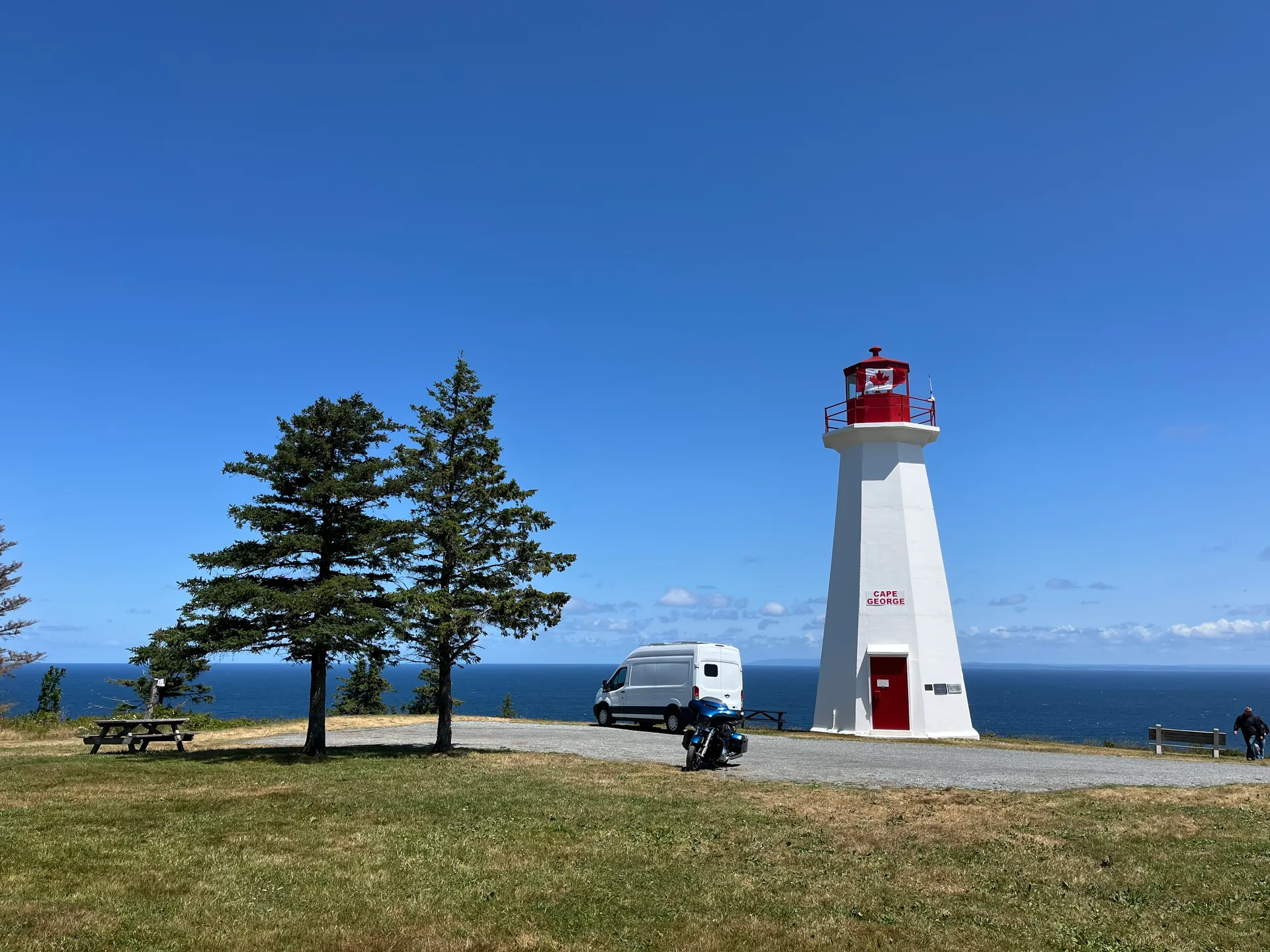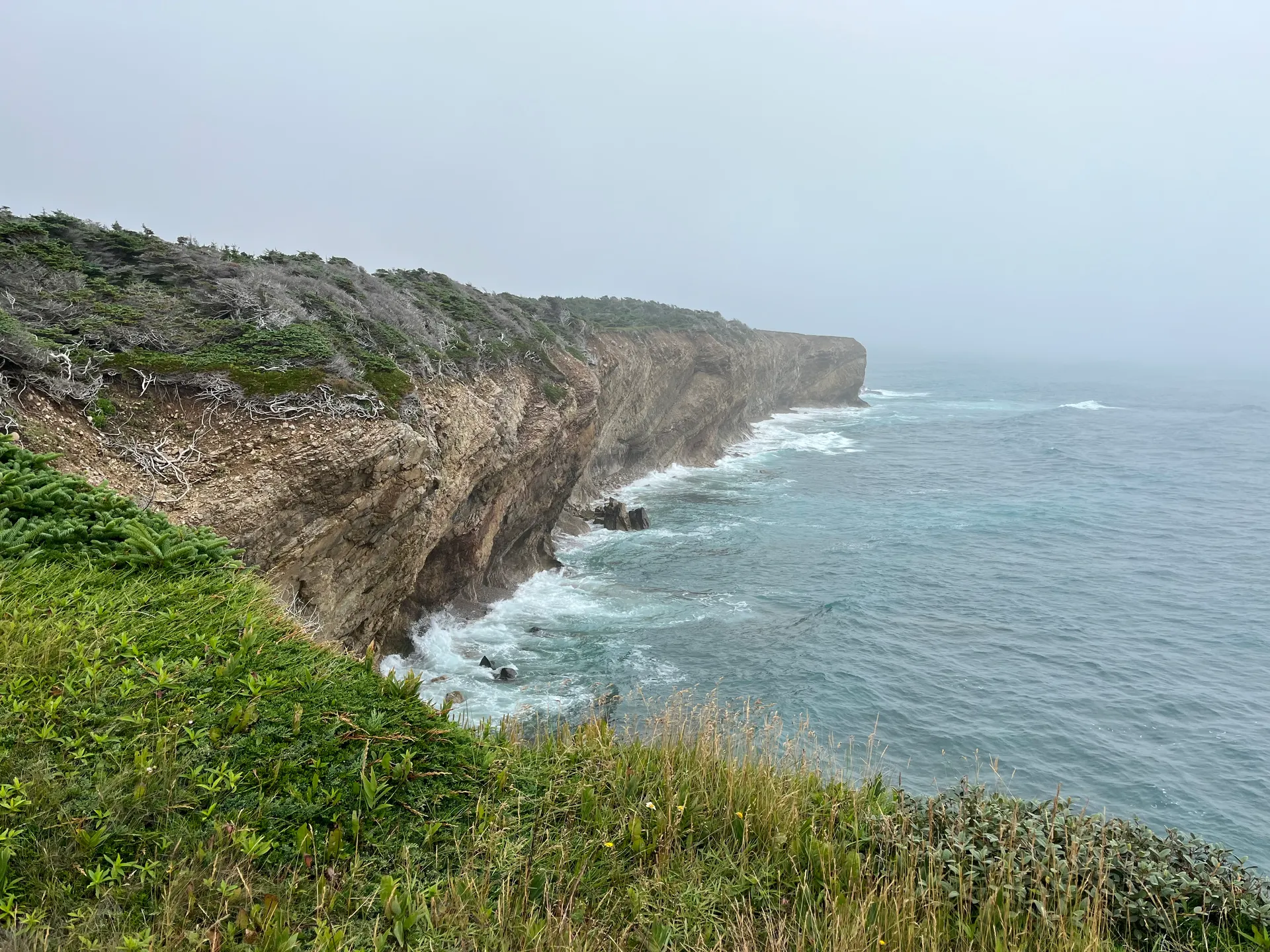 Noch ein Tipp vom Folk Festival: Cape St. George und der französische Brotofen. Also machen wir das zu unserem nächsten Ziel. Die Steilküste ist beeindruckend, und es gibt tatsächlich Brötchen. Auch wenn die nicht aus dem Holzofen, sondern aus dem Elektrobackofen kommen. Aber sehr lecker mit Marmelade und Butter. Wir wandern dann noch den Marche des miettes, den Brotkrumenweg. Am Ende wartet zum Glück keine Hexe wie bei Hänsel und Gretel, sondern weitere beeindruckende Steilküsten, Möwen und Seehunde unten im Wasser. Die Kanadier, die wir bis jetzt getroffen haben, sind total aufgeschlossen und unterhalten sich gerne. Das gibt uns die Möglichkeit, Tipps von den Locals abzustauben. Die Vogelkolonie am Ende des Weges können wir nur noch hören, da die Wolken und der Nebel zurück sind. Am Abend kommt die Sonne wieder raus, und wir beschließen, einfach über Nacht hier zu bleiben. Wir sind nicht die Einzigen.