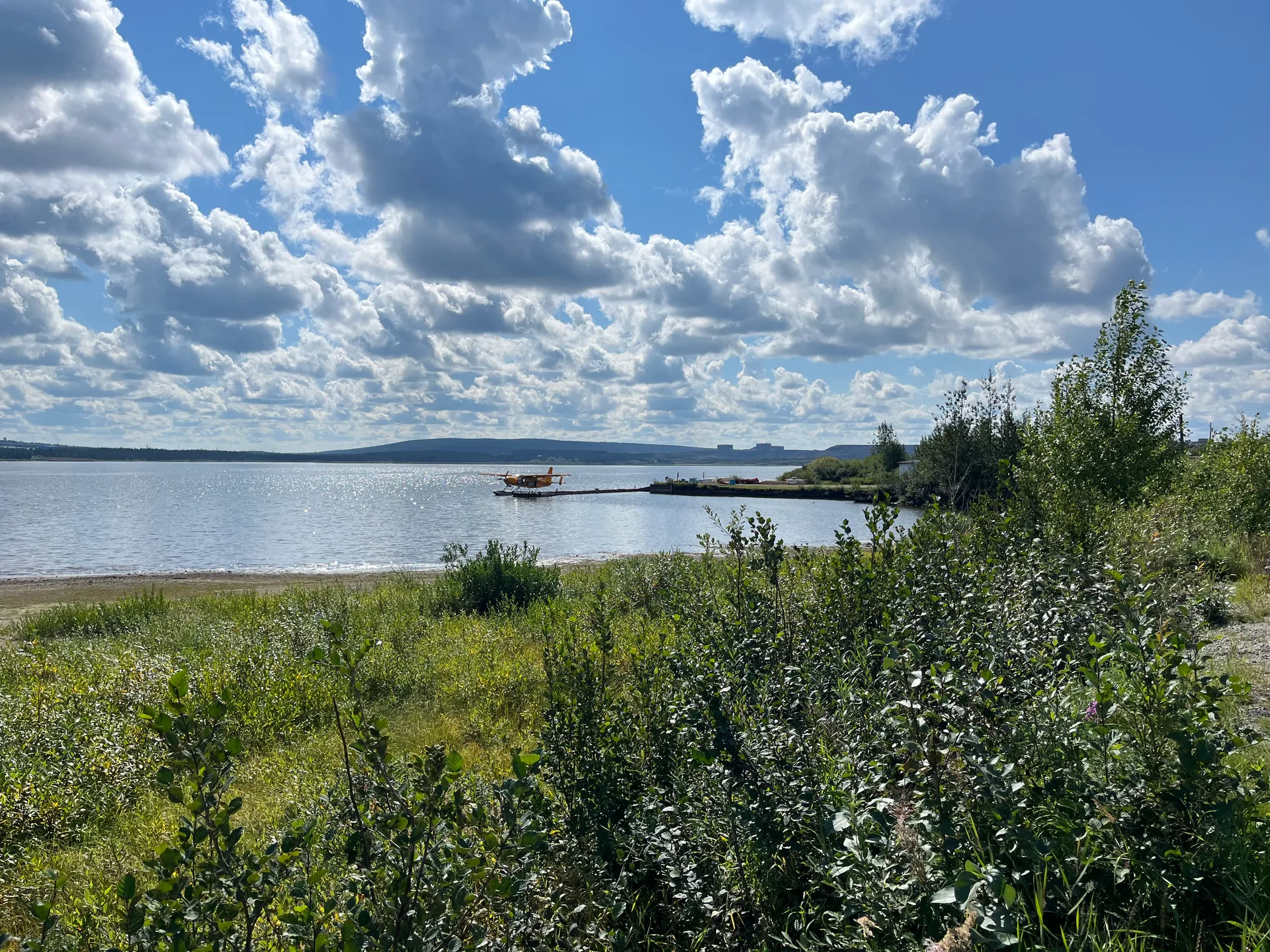 Für die kommende Strecke, mit Schotter und vielen Kurven, bringt uns der Tempomat ohnehin nichts, und Schnee scheint auch nicht in Sicht zu sein. Wir übernachten am Tanya Lake, und ich schaffe es, meine Spazierrunde um den See zu beenden, bevor das Gewitter über das Wasser zieht. Am nächsten Morgen möchte ich ein paar Runden um den See laufen und zwischendurch am Strand jeweils eine Runde Stabi-Übungen einschieben. Die Blackflies finden mich jedoch unfassbar schnell, sodass ich die Stabi-Übungen schnell wieder aufgebe.