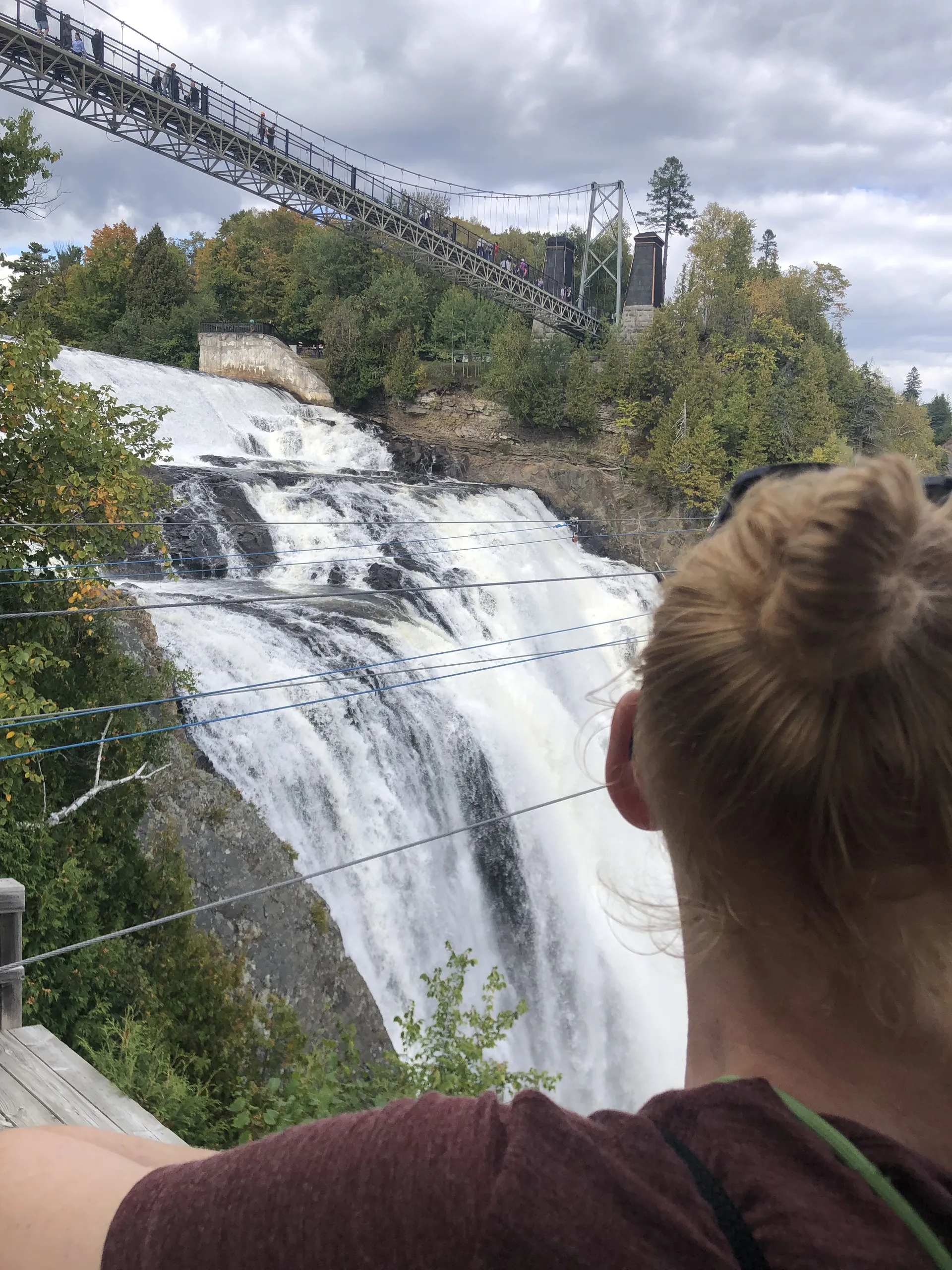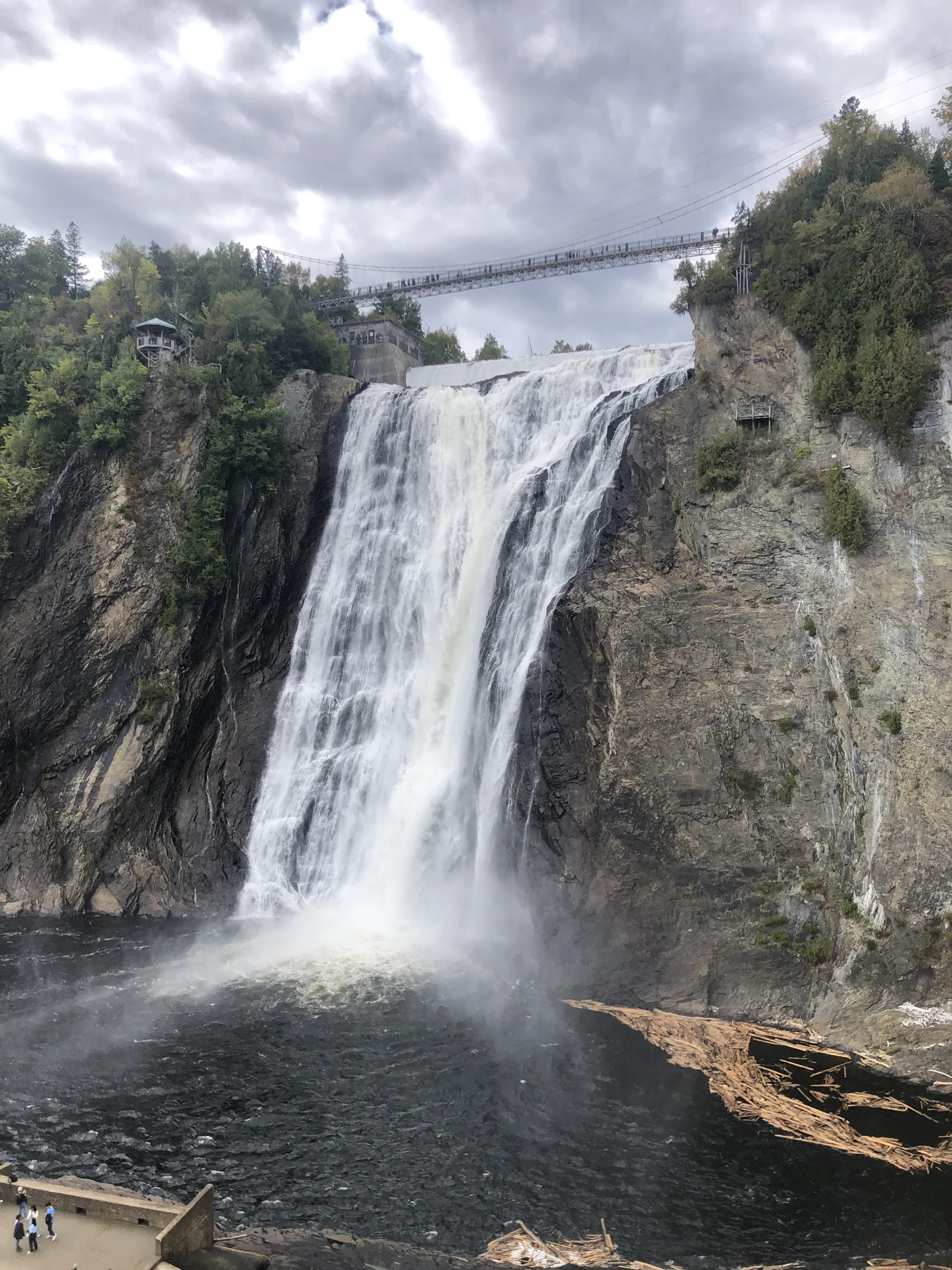 Der Park kostet Eintritt, aber die 6,30 CAD pro Person (umgerechnet ca. 4 €) sind es wert. Der Montmorency mündet hier in den Sankt‑Lorenz‑Strom; auf den letzten Metern stürzt er 83 Meter in die Tiefe. Das sind 30 Meter mehr als bei den Niagarafällen, die Wassermenge ist allerdings deutlich geringer.