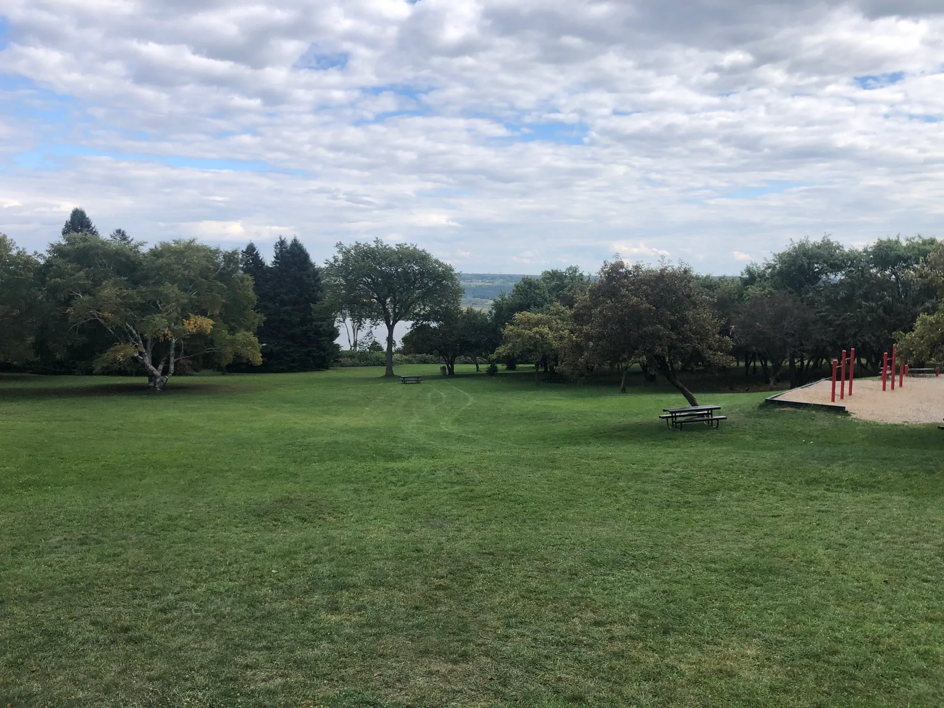 Entlang der Nordseite des Flusses gibt es mehrere Parks mit Picknickplätzen. Hier kann man die Sonne genießen, lesen und den Schiffen zuschauen. Am nächsten Morgen parken wir um und frühstücken an einem dieser Parks, bevor wir weiter Richtung Montréal fahren.