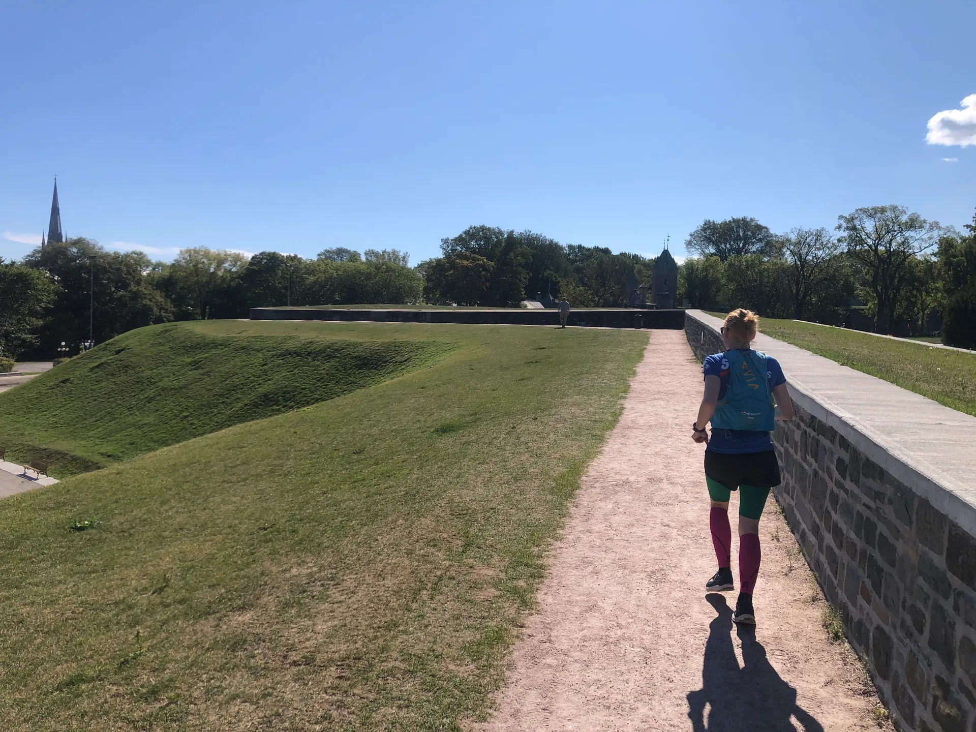 Die ganze Tour habe ich im Laufblog zusammengefasst. Kurzversion: Wir folgten zunächst dem Fahrradweg am Fluss in Richtung Innenstadt, um dann die älteste Holztreppe Quebecs zu erklimmen. Diese verbindet den tiefer gelegenen Hafen mit dem östlichen Teil der Plaines d’Abraham.