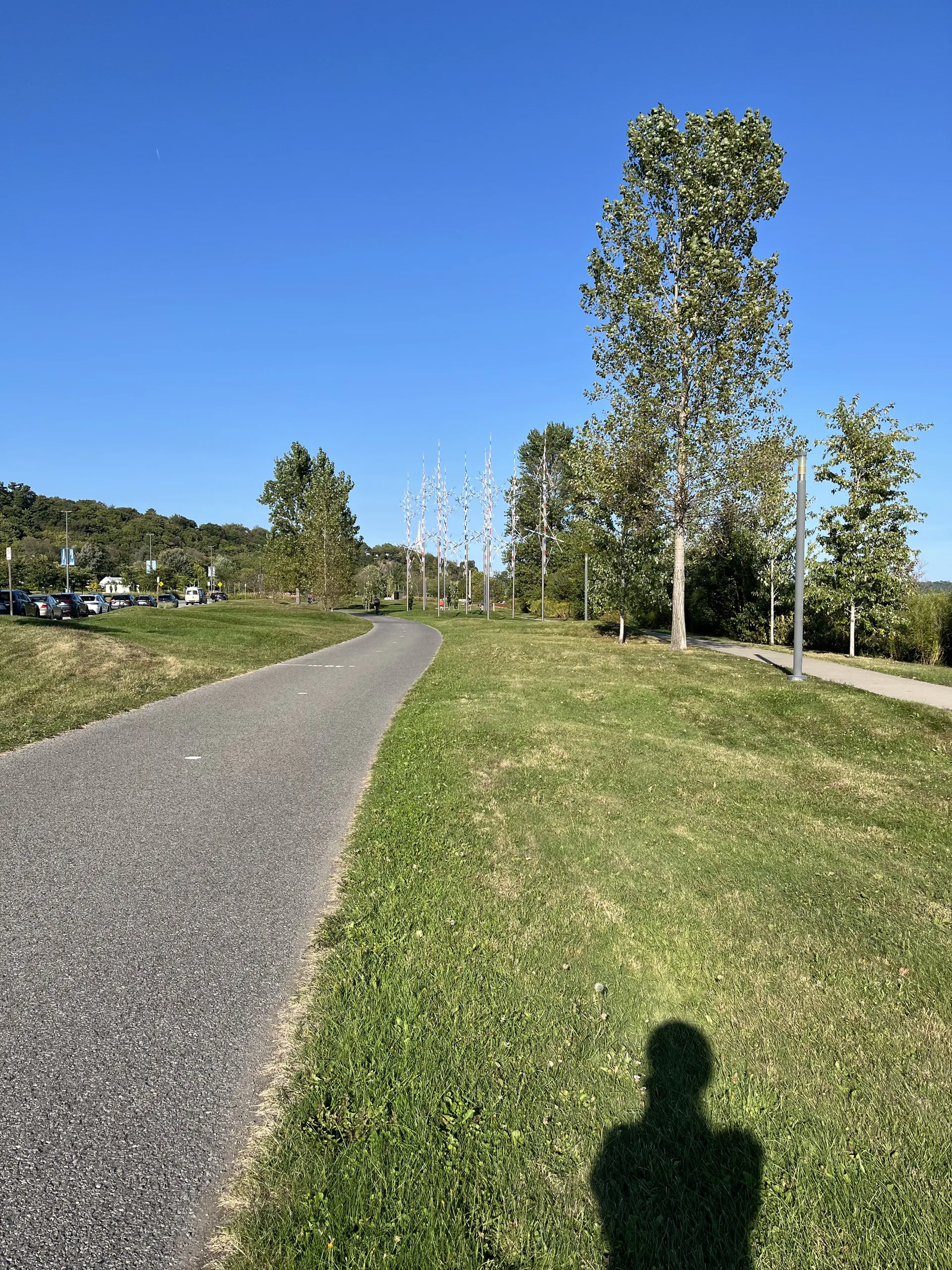 Ich packe also mein Fahrrad aus und ziehe los. Mein Plan ist, auf der Nordseite des Flusses bis zur Pierre‑Laporte‑Brücke zu fahren, dort den Fluss zu queren und auf der anderen Seite bis Lévis zu radeln. Dort gibt es eine Fähre, die zum alten Hafen von Québec City fährt.