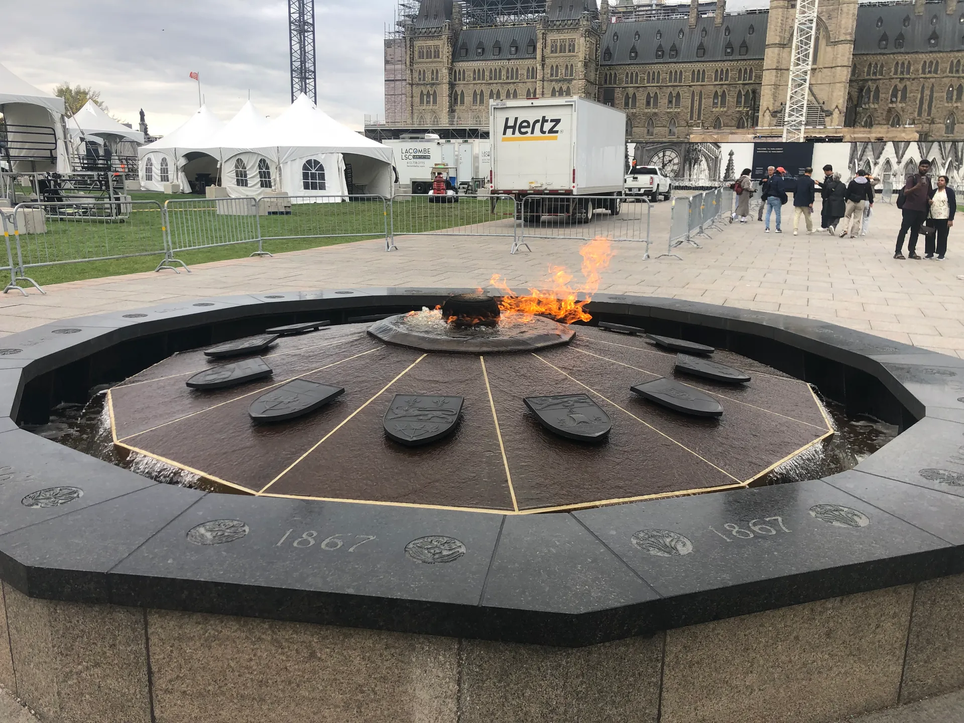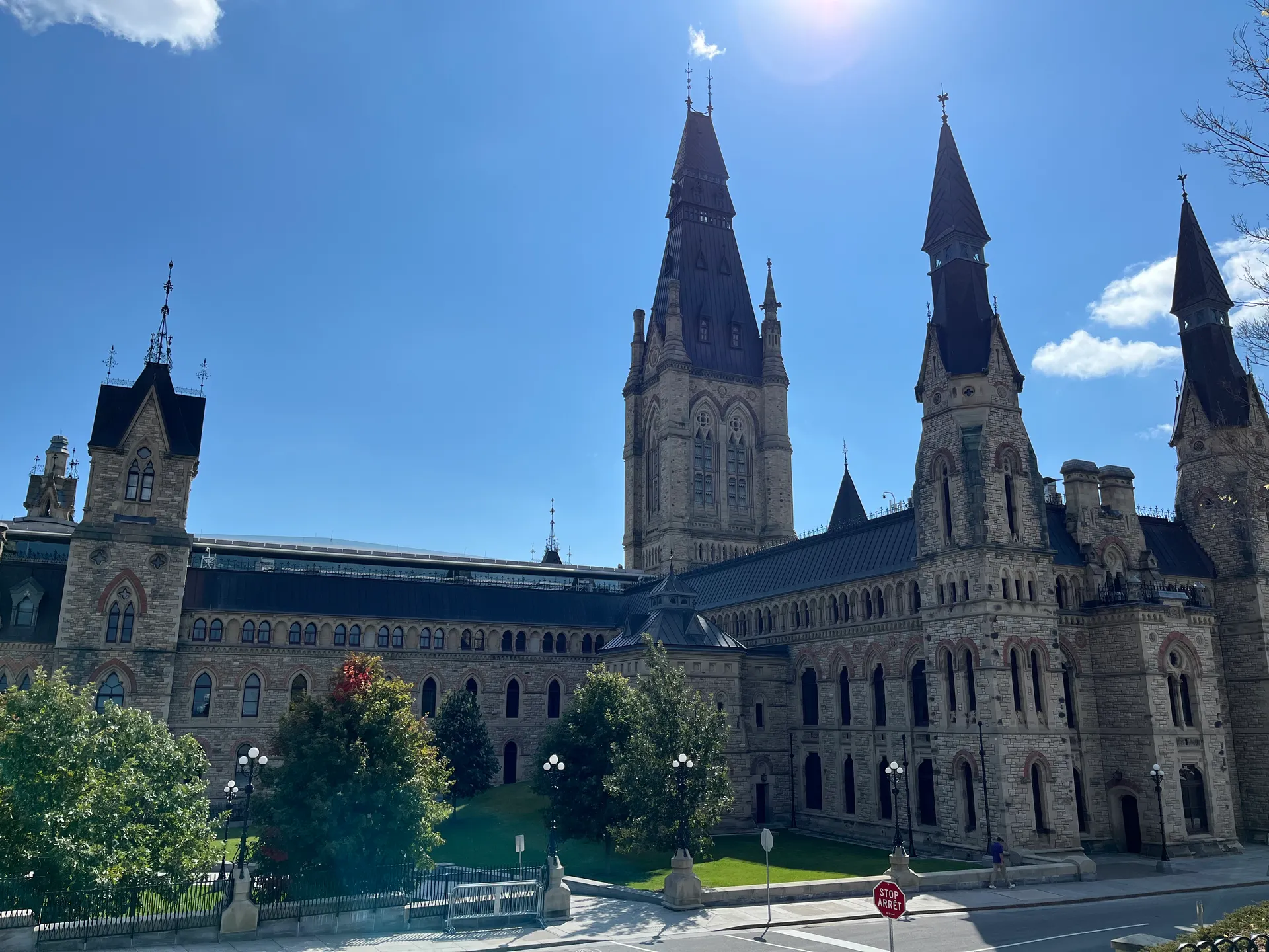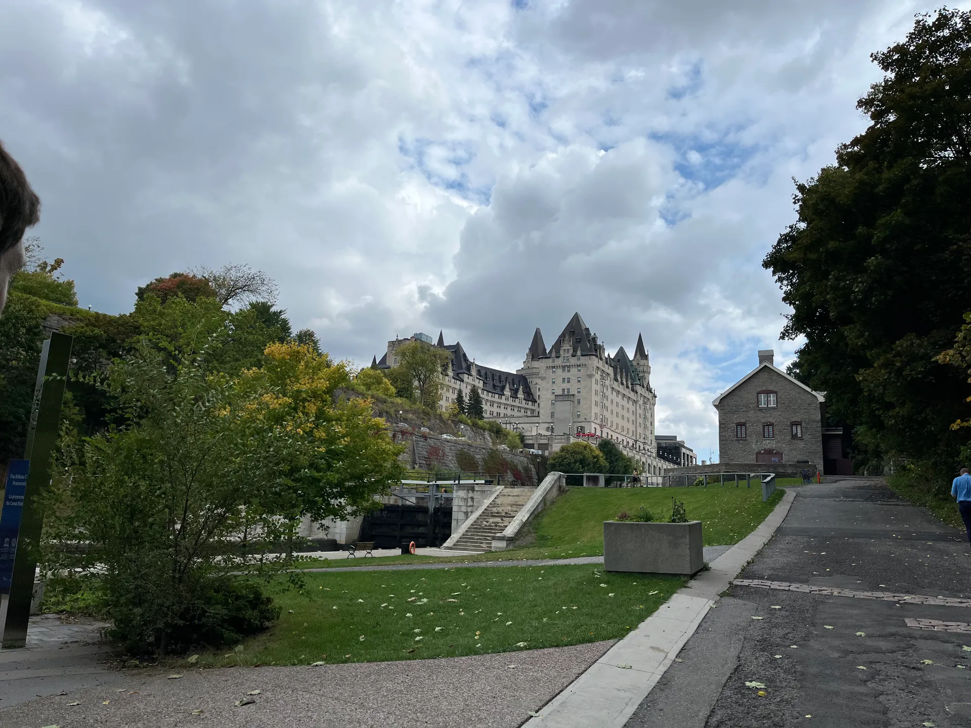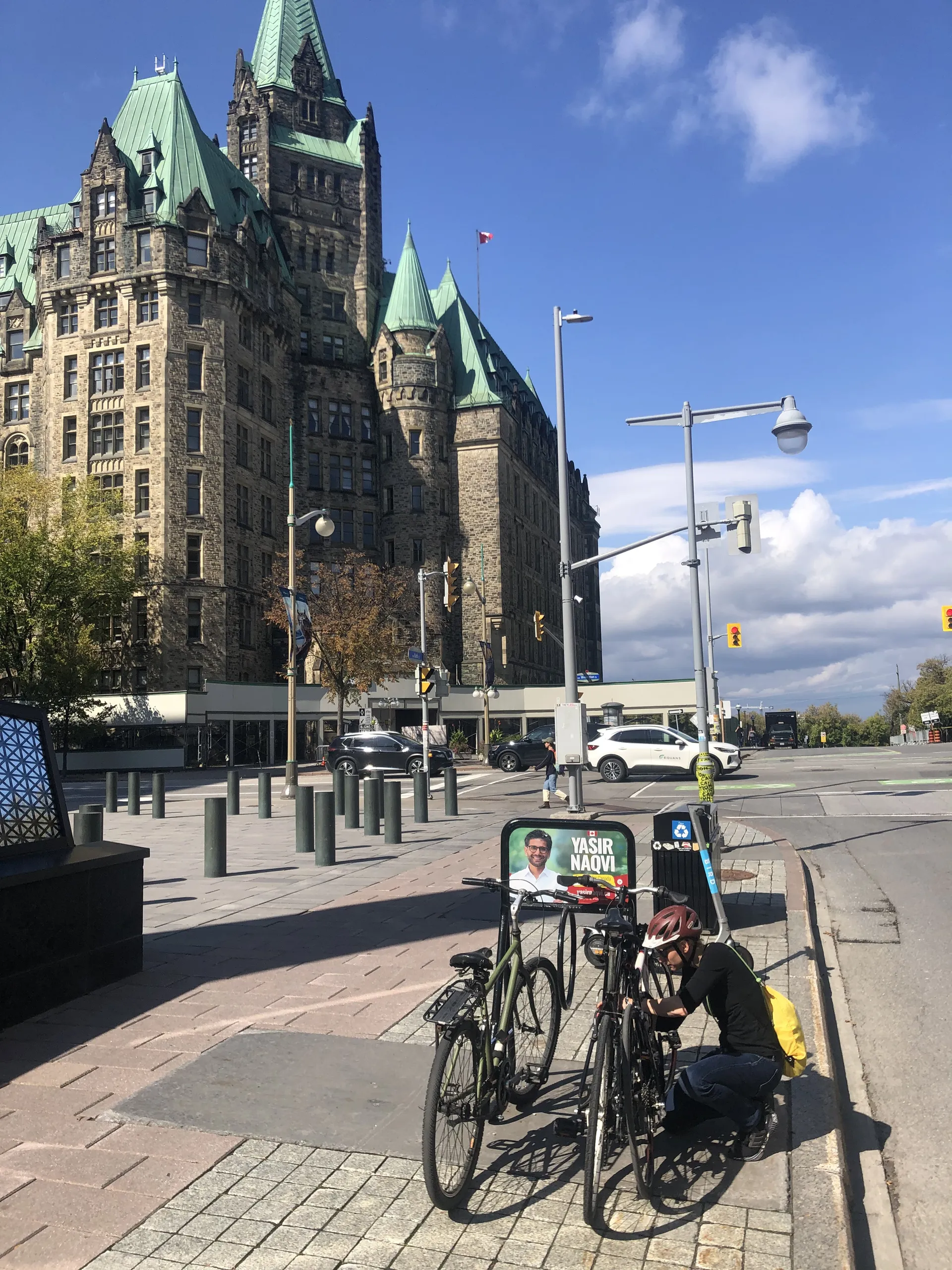 Für uns ist dieser Kanal das Eintrittstor zu unserer Ottawa-Sightseeing-Tour. Allerdings nicht mit einem Boot auf dem Wasser, sondern über den Fahrradweg direkt daneben. Wir parken am Hog’s Back Park südlich der Innenstadt und steigen auf die Fahrräder um. Nach neun Kilometern auf wunderbaren Fahrradwegen entlang des Kanals stehen wir direkt am Parliament Hill. Die Fahrräder schließen wir an und machen zu Fuß weiter.