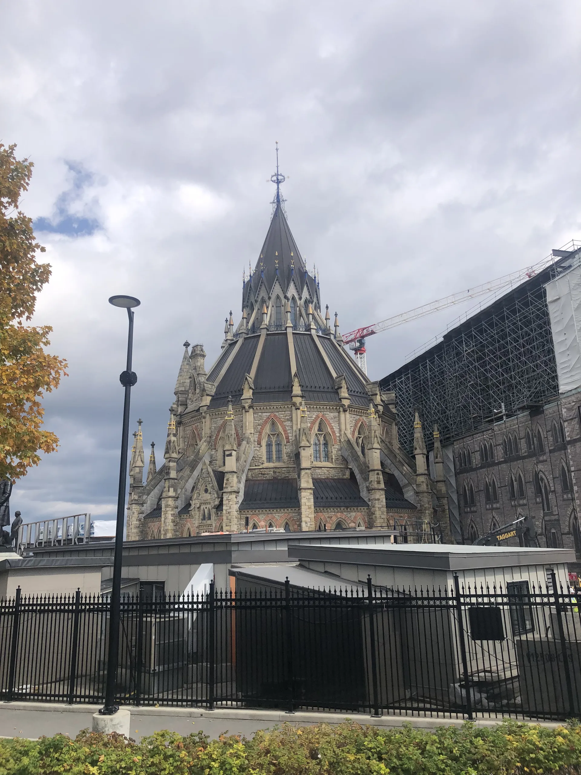 Dort stehen wir nun und schauen hinüber auf das von Baukränen gesäumte Parlament, als von hinten ein „Das kann doch nicht sein!“ kommt. Dass die Welt ein Dorf ist, war uns schon vorher klar, aber wie groß ist die Wahrscheinlichkeit, dass wir Bekannte aus den Gärten der Begegnung in Bayreuth in Ottawa treffen? Die beiden sind auf den Spuren vergangener Studentenjahre (vor mehreren Jahrzehnten) und fliegen am nächsten Tag zurück nach Deutschland. Wir streifen noch gemeinsam durch den Skulpturenpark und suchen und finden die prägnanteste Skulptur der Sammlung: Maman. Eine neun Meter hohe Spinne der Künstlerin Louise Bourgeois. Bei strahlendem Sonnenschein sieht sie beeindruckend aus, vor allem in Kombination mit der Notre-Dame-Kathedrale im Hintergrund. Mitten in der Nacht muss sie aber etwas schaurig sein – und nichts für Arachnophobiker. Wir laufen zurück zu den Fahrrädern und radeln zurück zum Auto, diesmal auf der anderen Seite des Kanals.