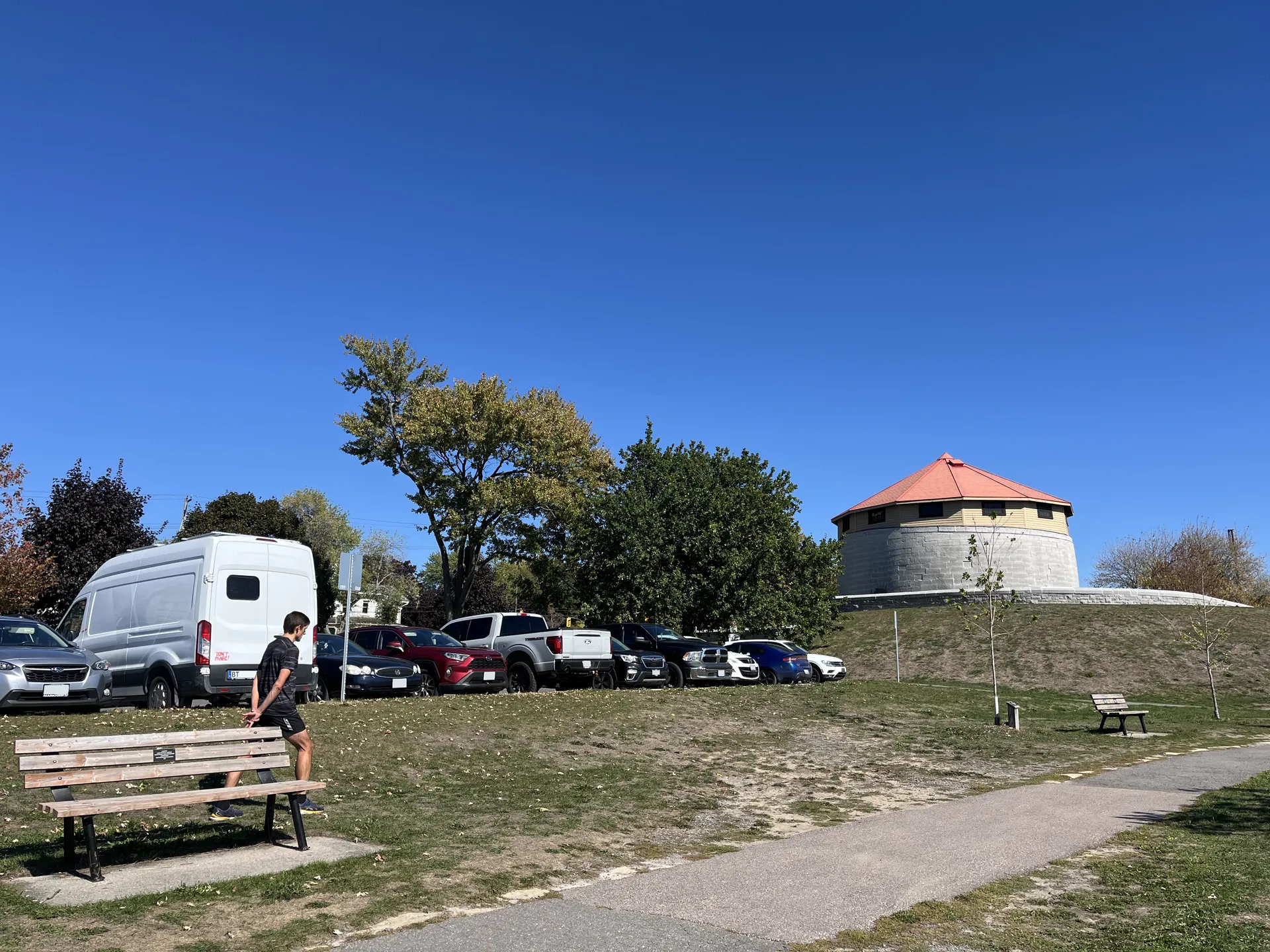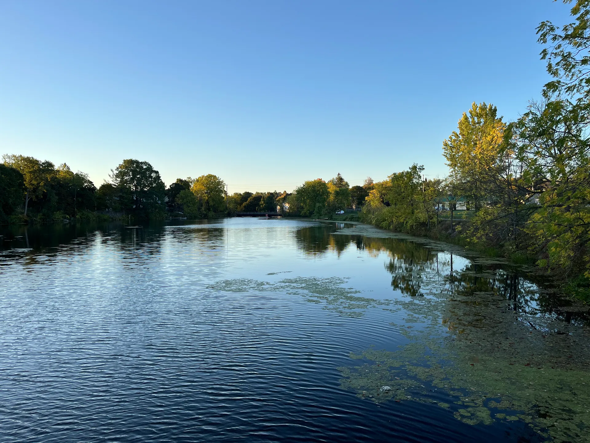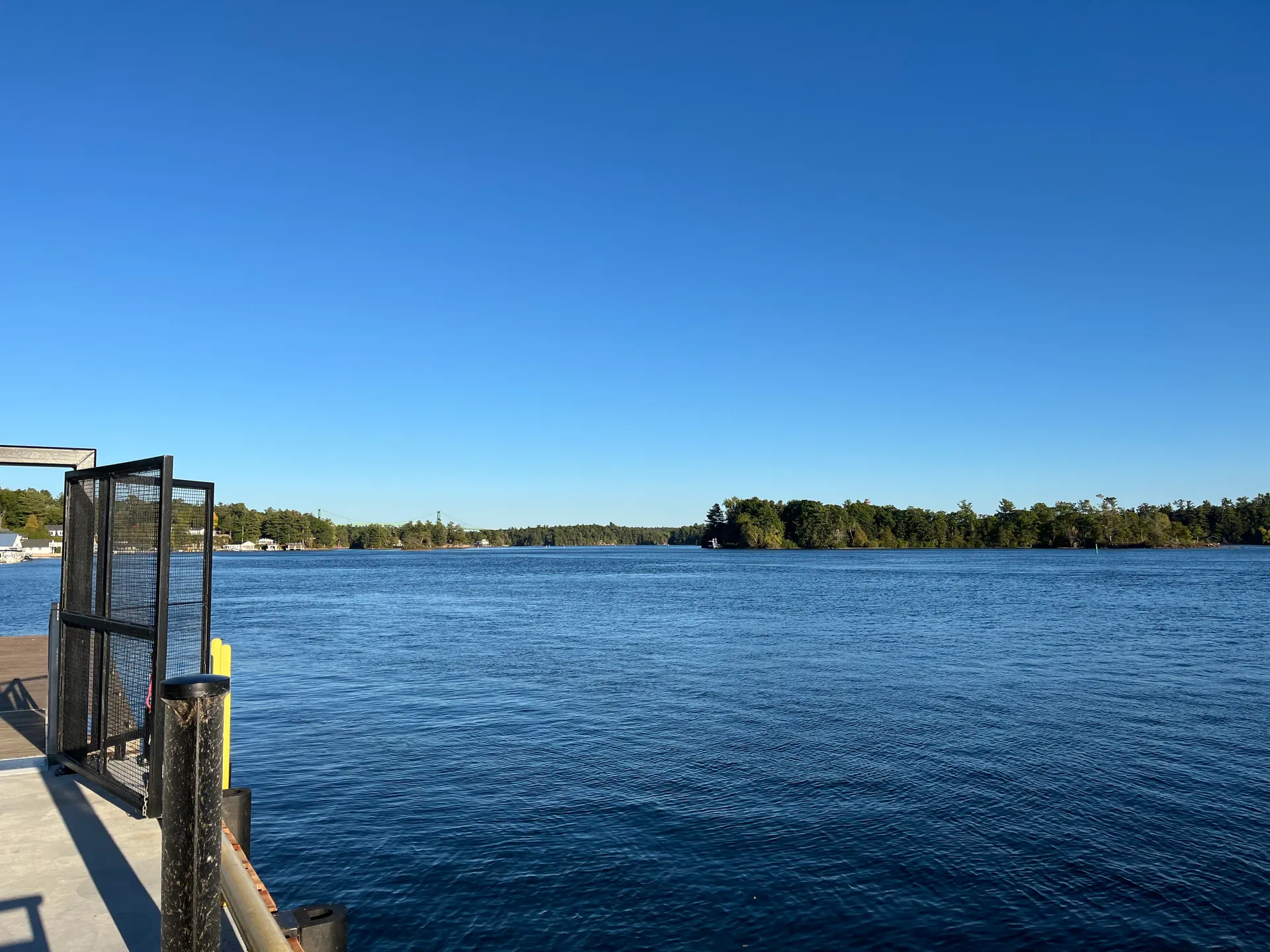 Diese Stadt ist angeblich das Tor zu den 1000 Inseln. Wir fahren mit den Rädern auf dem Fahrradweg neben der Straße parallel zum Wasser entlang. Leider ist quasi die gesamte Uferfront Privateigentum. An einem kleinen öffentlichen Bootsanleger und einem Parkplatz erhaschen wir noch einen Blick aufs Wasser und die Inseln.