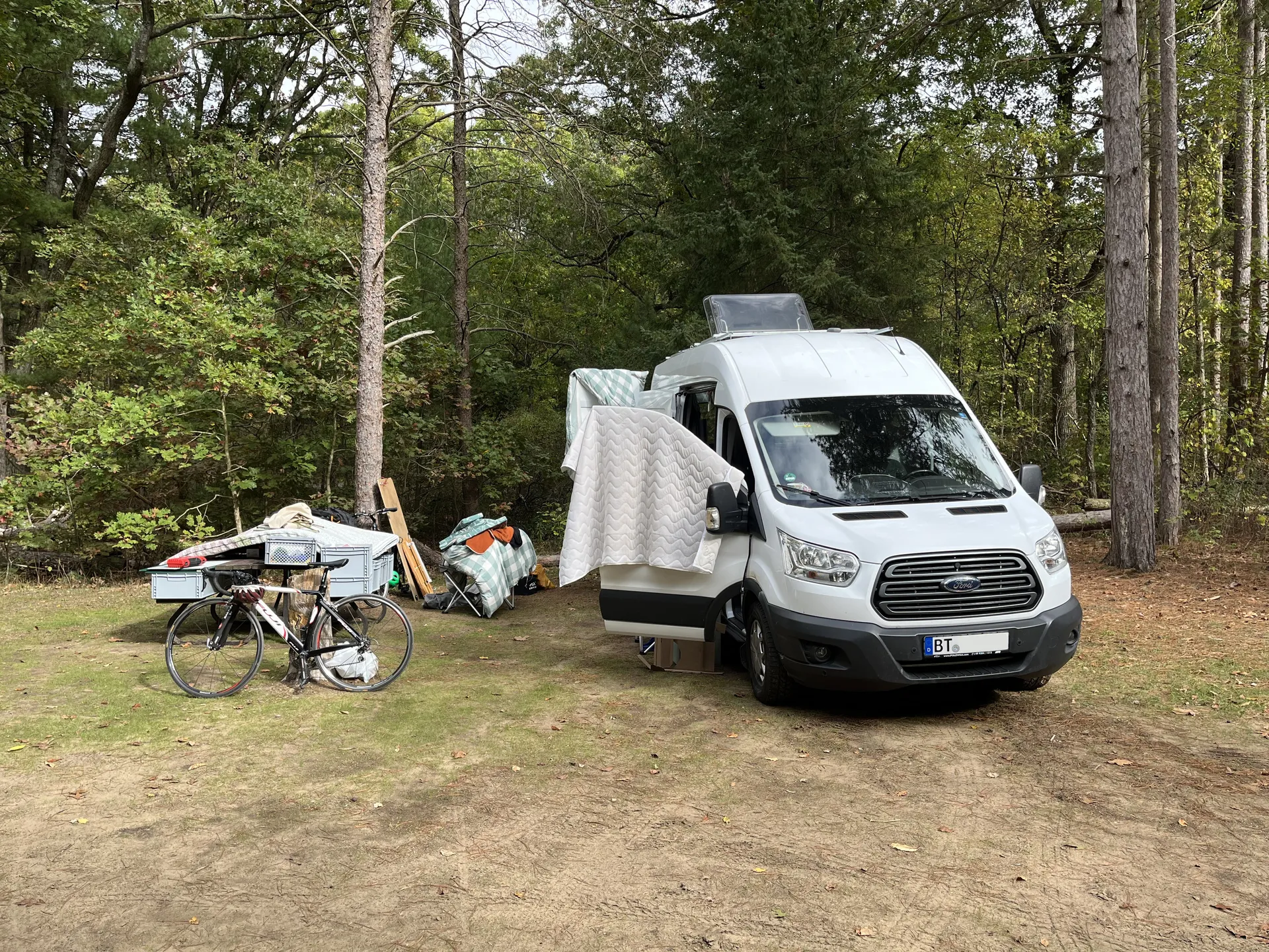 Der Name passt zum Datum, denn es ist kanadisches Thanksgiving. Anders als in den USA wird Thanksgiving in Kanada am zweiten Montag im Oktober gefeiert. Es wird nicht so groß gefeiert wie in den USA, aber auch hier versammelt sich die Familie um einen Truthahn. Für uns gibt es keinen Vogel zum Abendessen, dafür aber ein Lagerfeuer auf dem Campingplatz, nachdem wir den Camper mal wieder von oben bis unten durchgeputzt haben. Im und um den Park herum gibt es unzählige Mountainbike-Trails. Die sind etwas spannend zu laufen, weil sie sich durch den Wald winden und es ständig rauf und runter geht. Wir finden aber auch einen Weg hinunter zum Strand am Lake Erie.