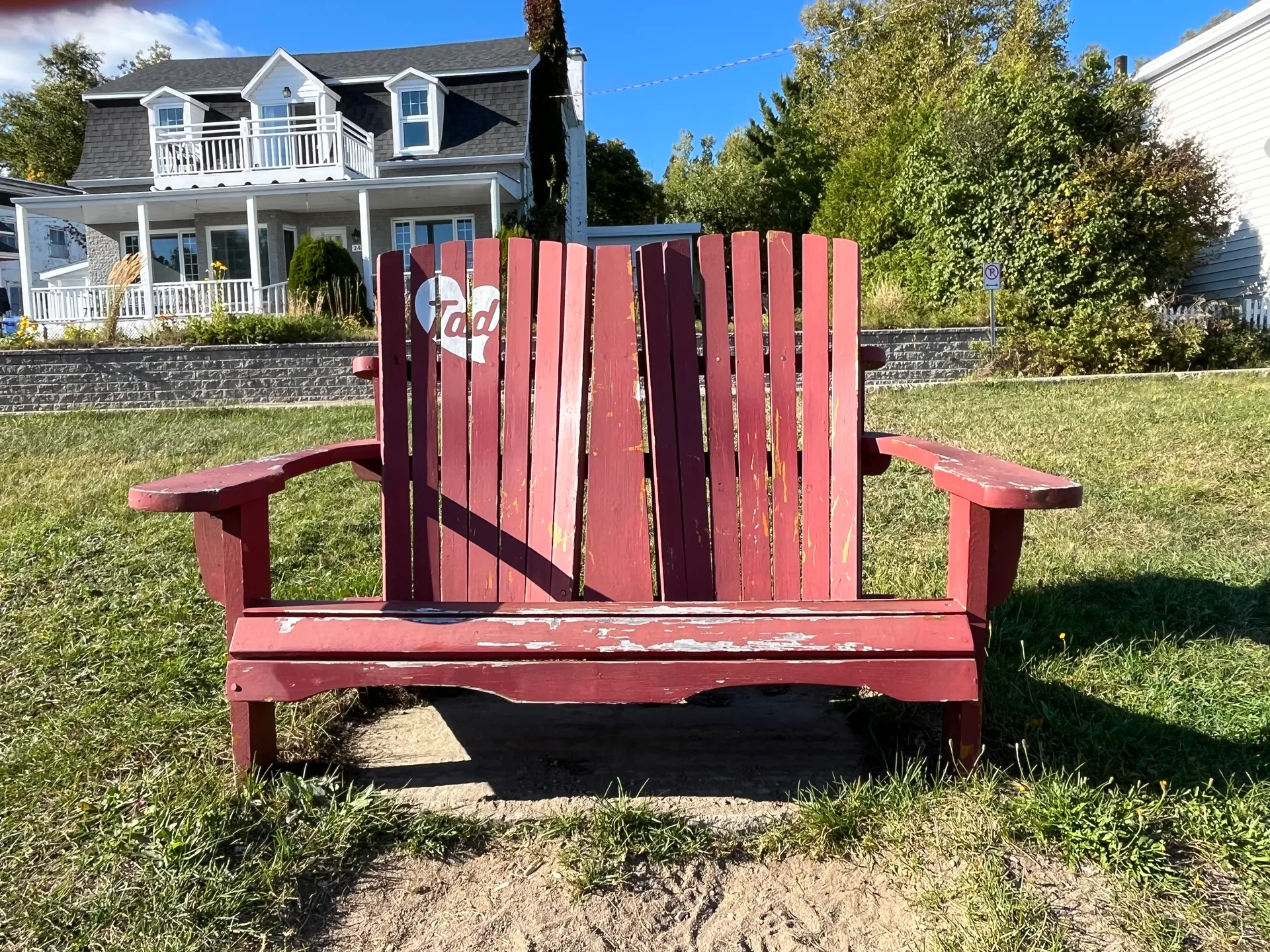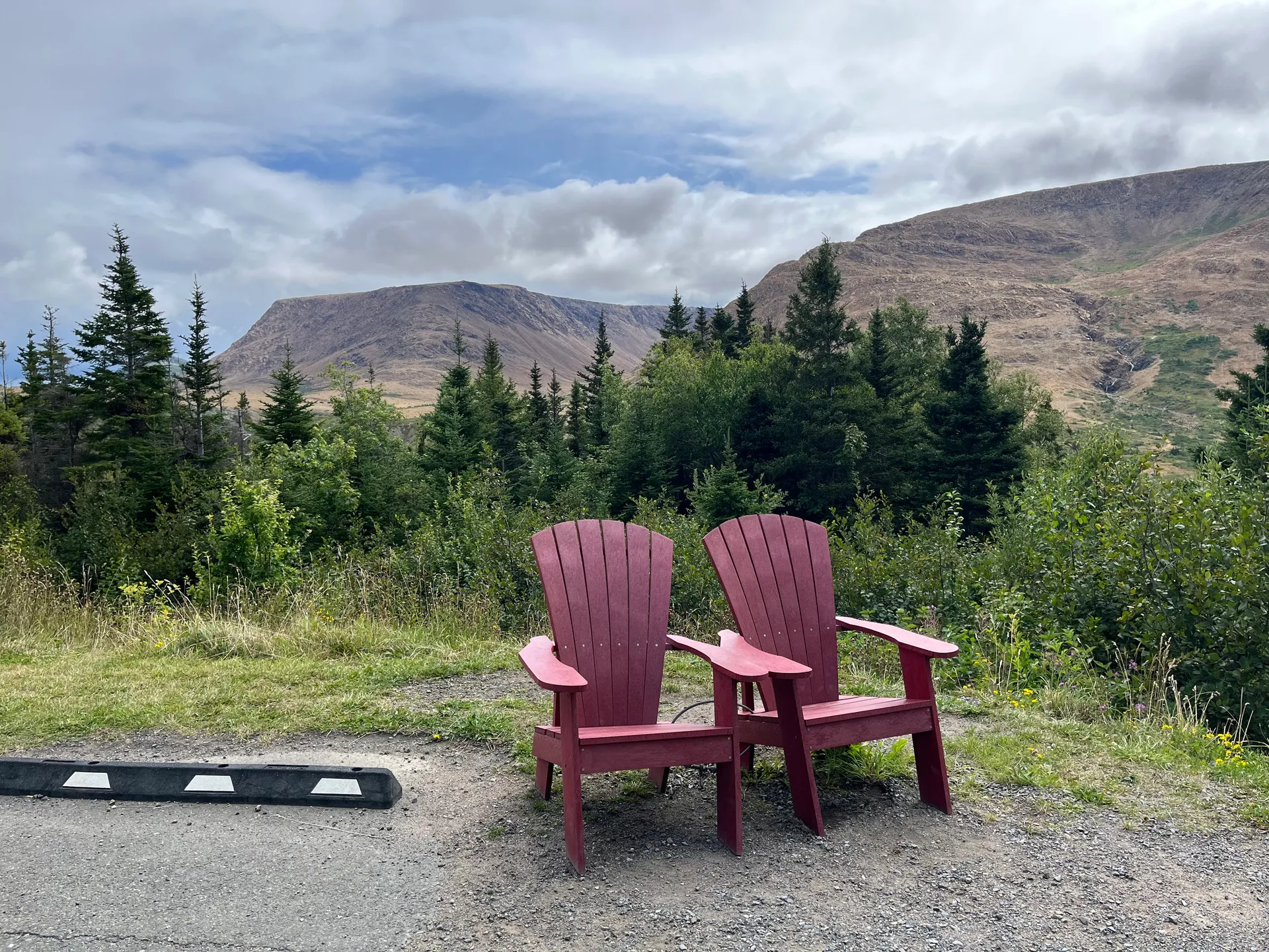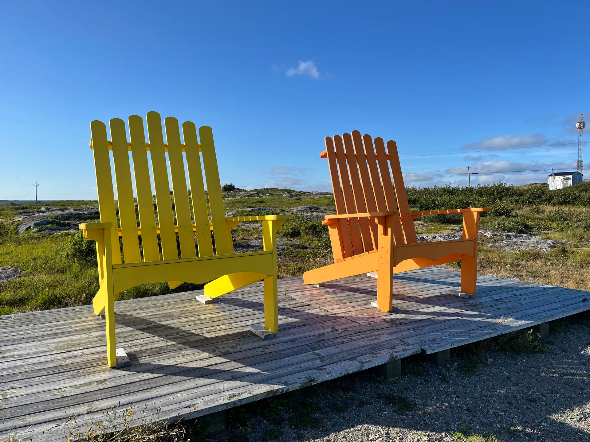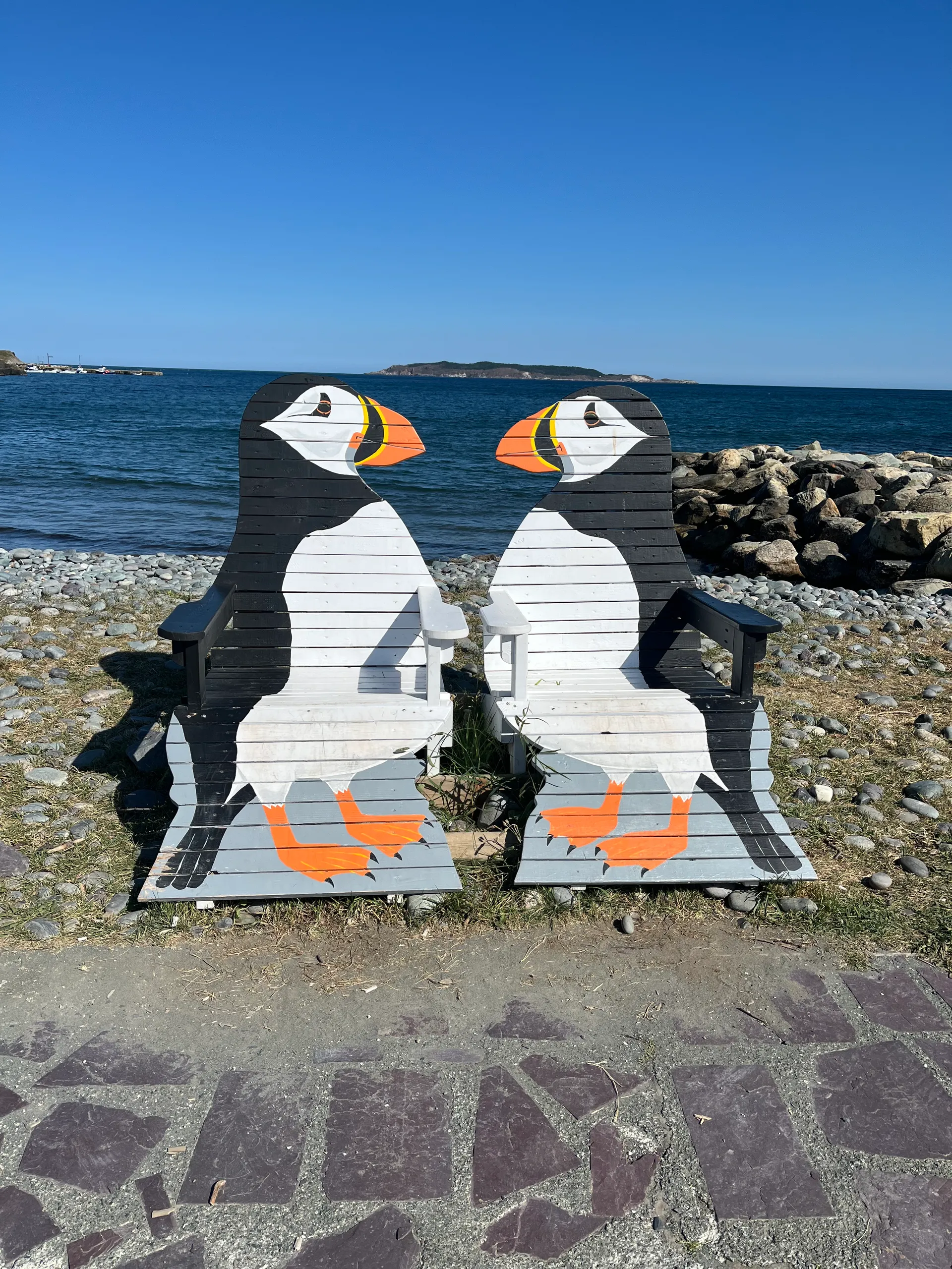 In Kanada sitzt man gerne bequem. Es hat sich ein unschlagbares Design durchgesetzt das in leichten Variationen überall aufzufinden ist. Egal ob am Pier von Halifax, Parkplätzen, Aussichtspunkten oder auch mal einem Gipfel. Meistens in zweier Paaren, mal über dimensioniert, mal als Puffin, mal mit Tisch, aber immer in bunten Farben.