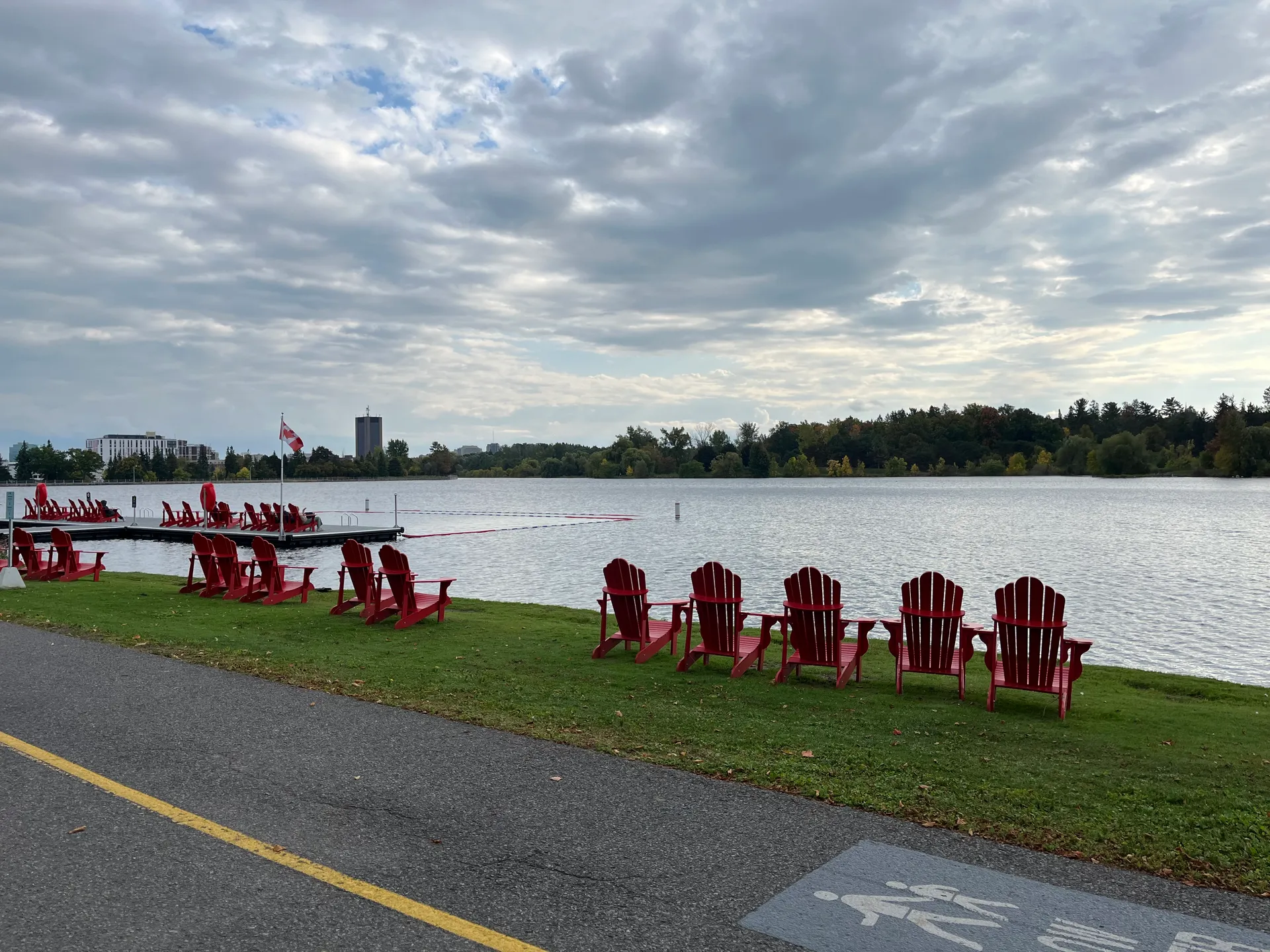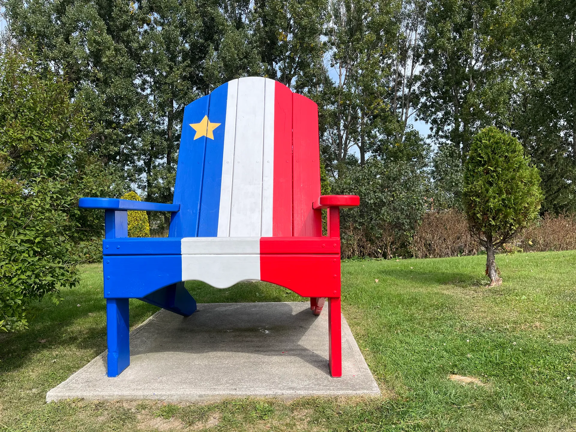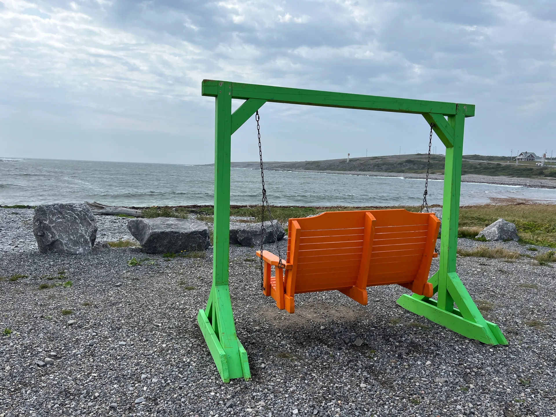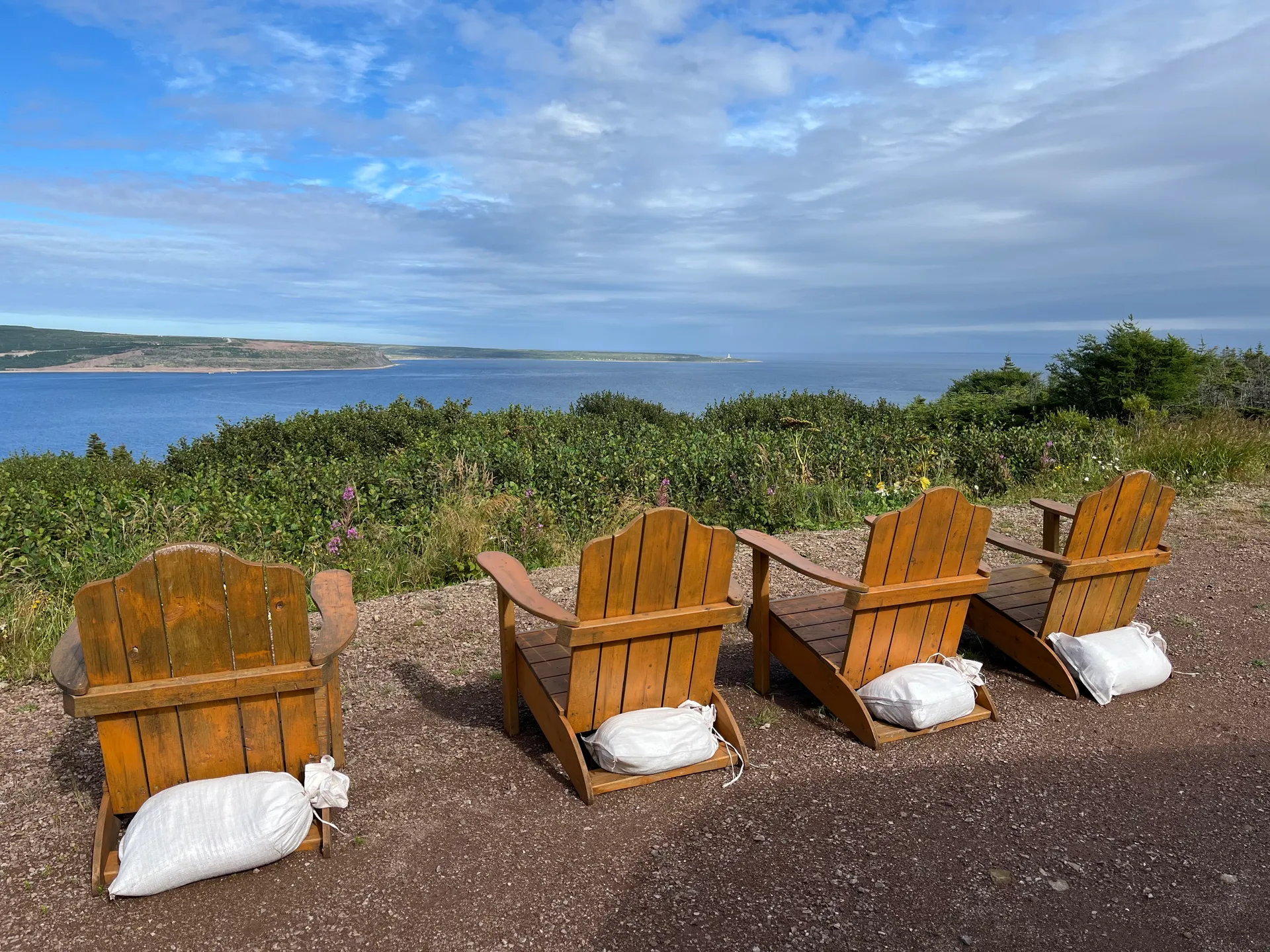 In Kanada sitzt man gerne bequem. Es hat sich ein unschlagbares Design durchgesetzt das in leichten Variationen überall aufzufinden ist. Egal ob am Pier von Halifax, Parkplätzen, Aussichtspunkten oder auch mal einem Gipfel. Meistens in zweier Paaren, mal über dimensioniert, mal als Puffin, mal mit Tisch, aber immer in bunten Farben.