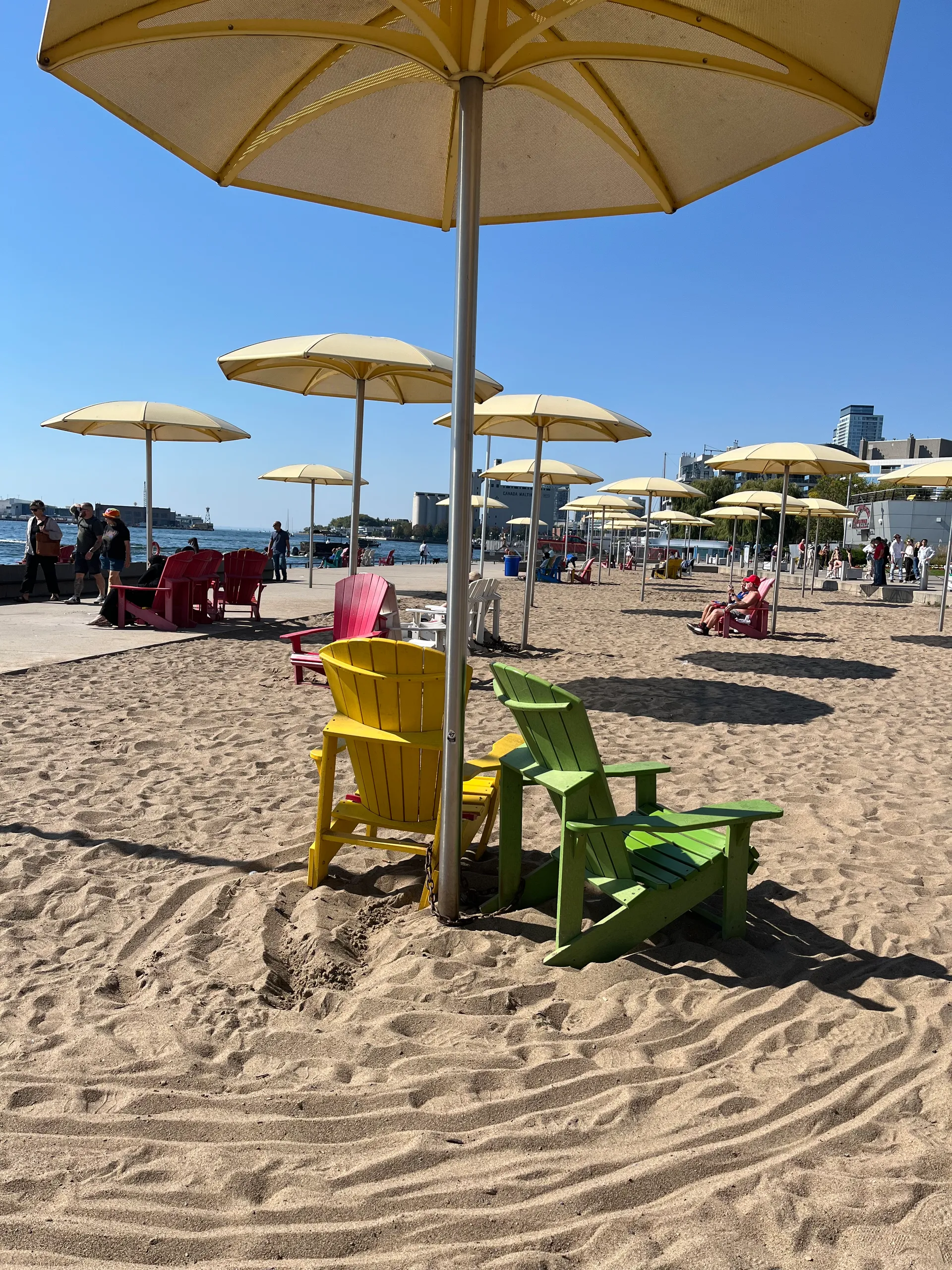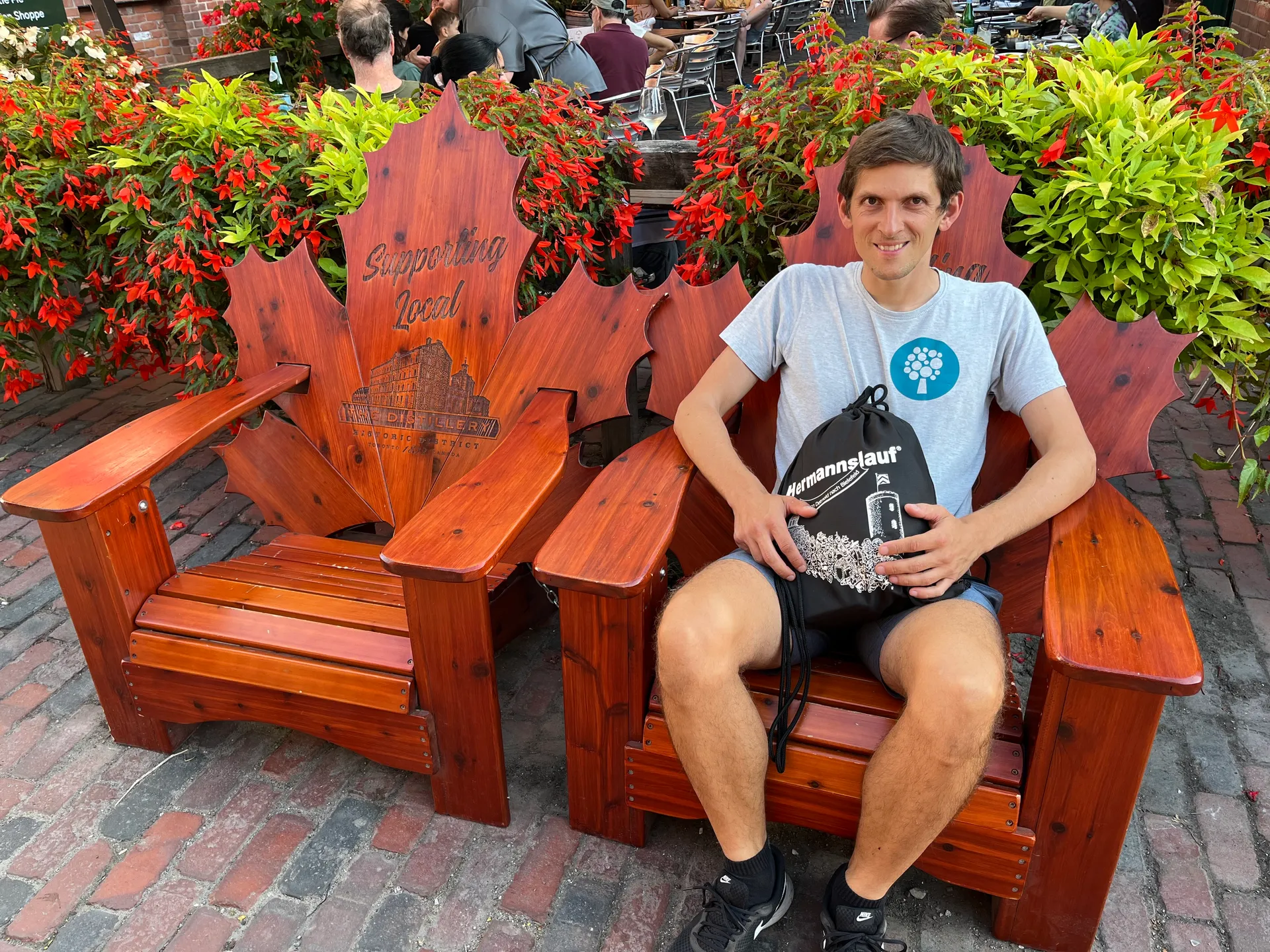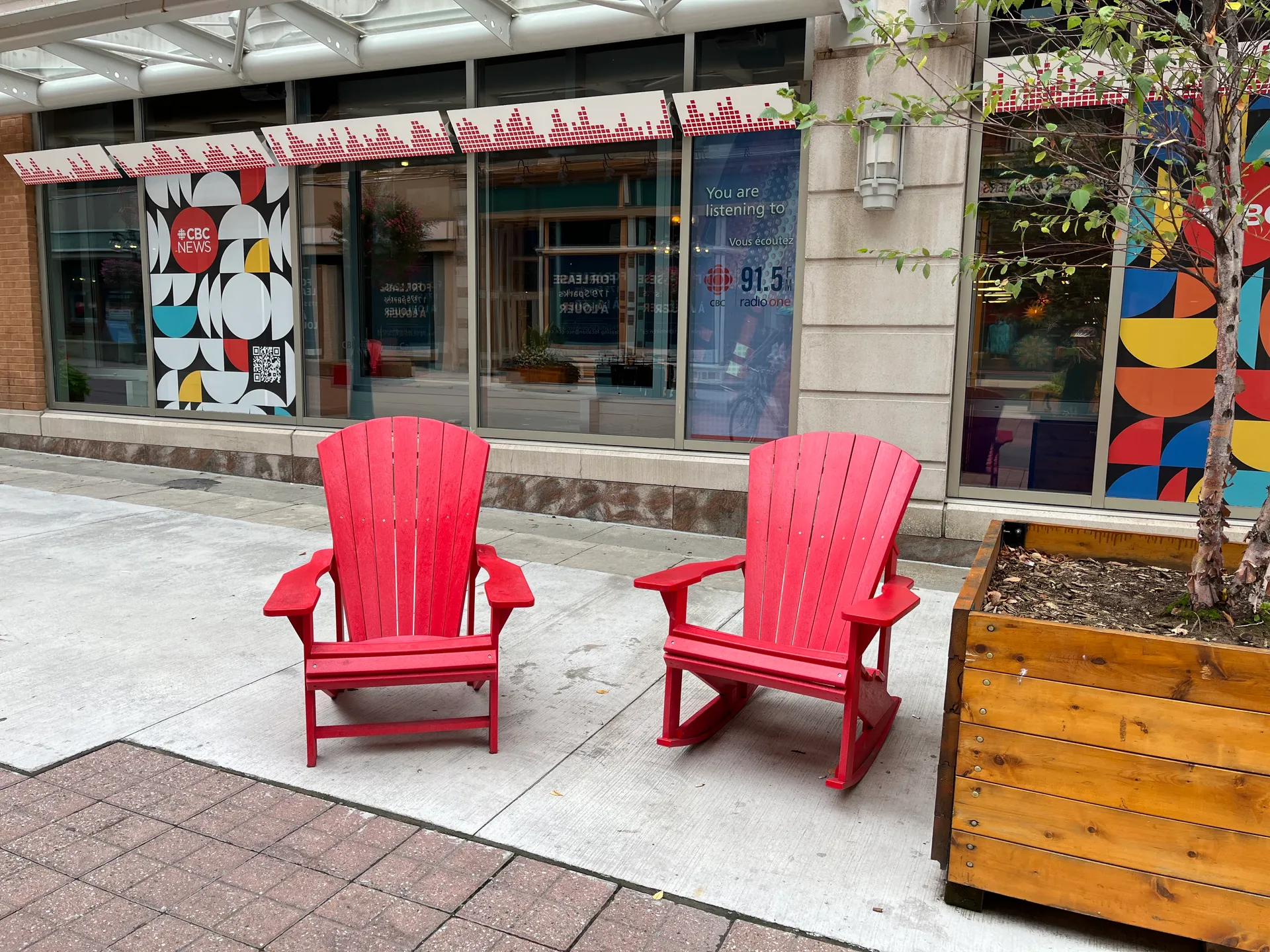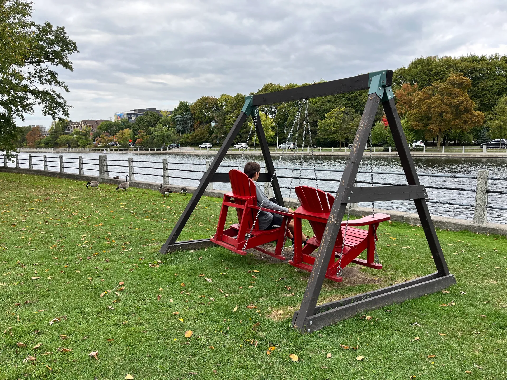 In Kanada sitzt man gerne bequem. Es hat sich ein unschlagbares Design durchgesetzt das in leichten Variationen überall aufzufinden ist. Egal ob am Pier von Halifax, Parkplätzen, Aussichtspunkten oder auch mal einem Gipfel. Meistens in zweier Paaren, mal über dimensioniert, mal als Puffin, mal mit Tisch, aber immer in bunten Farben.