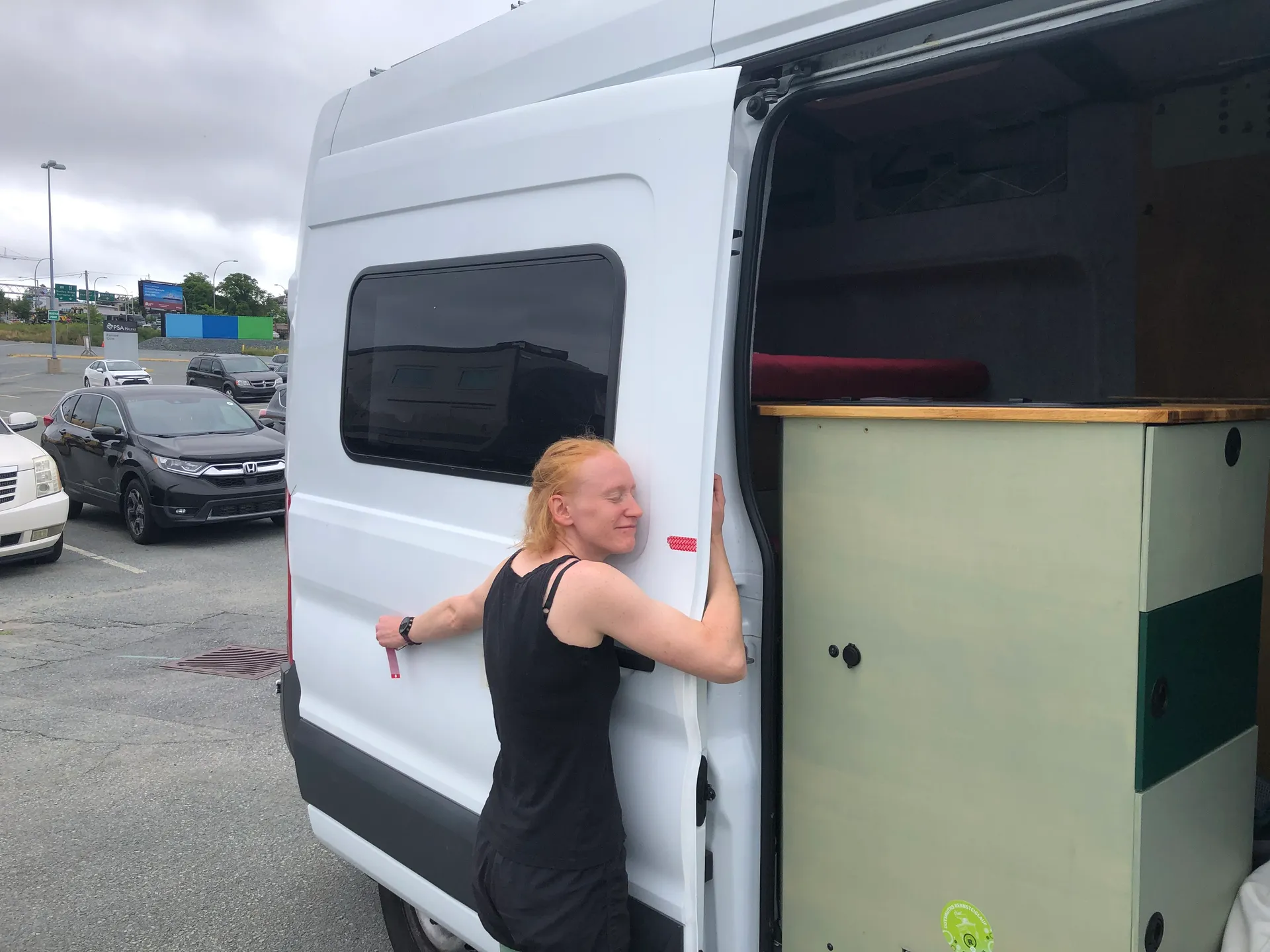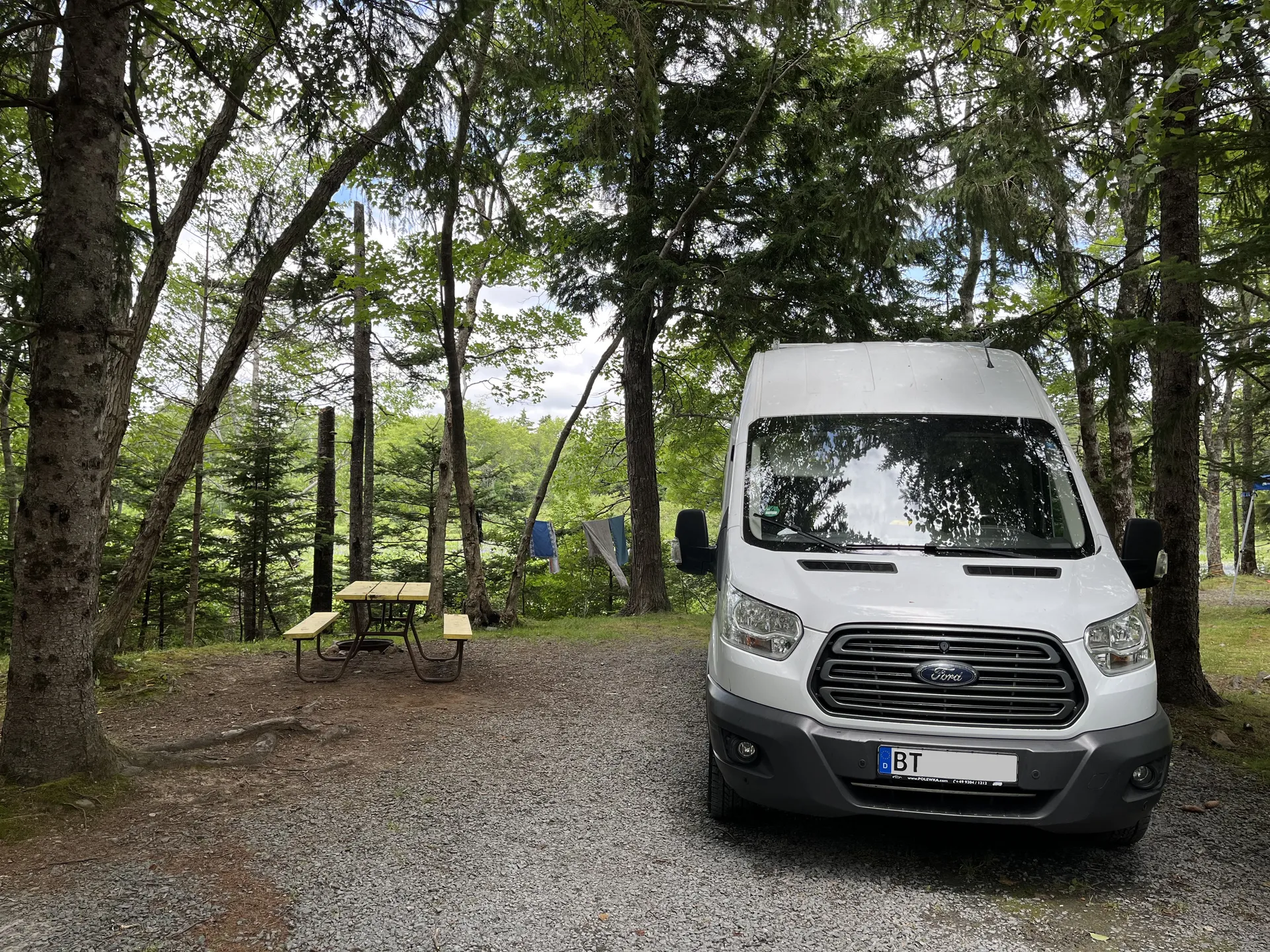 Den Camper haben wir drei Wochen vorher in Hamburg am Hafen abgegeben. Über Antwerpen und Liverpool ist er einen Tag vor uns in Halifax angekommen.