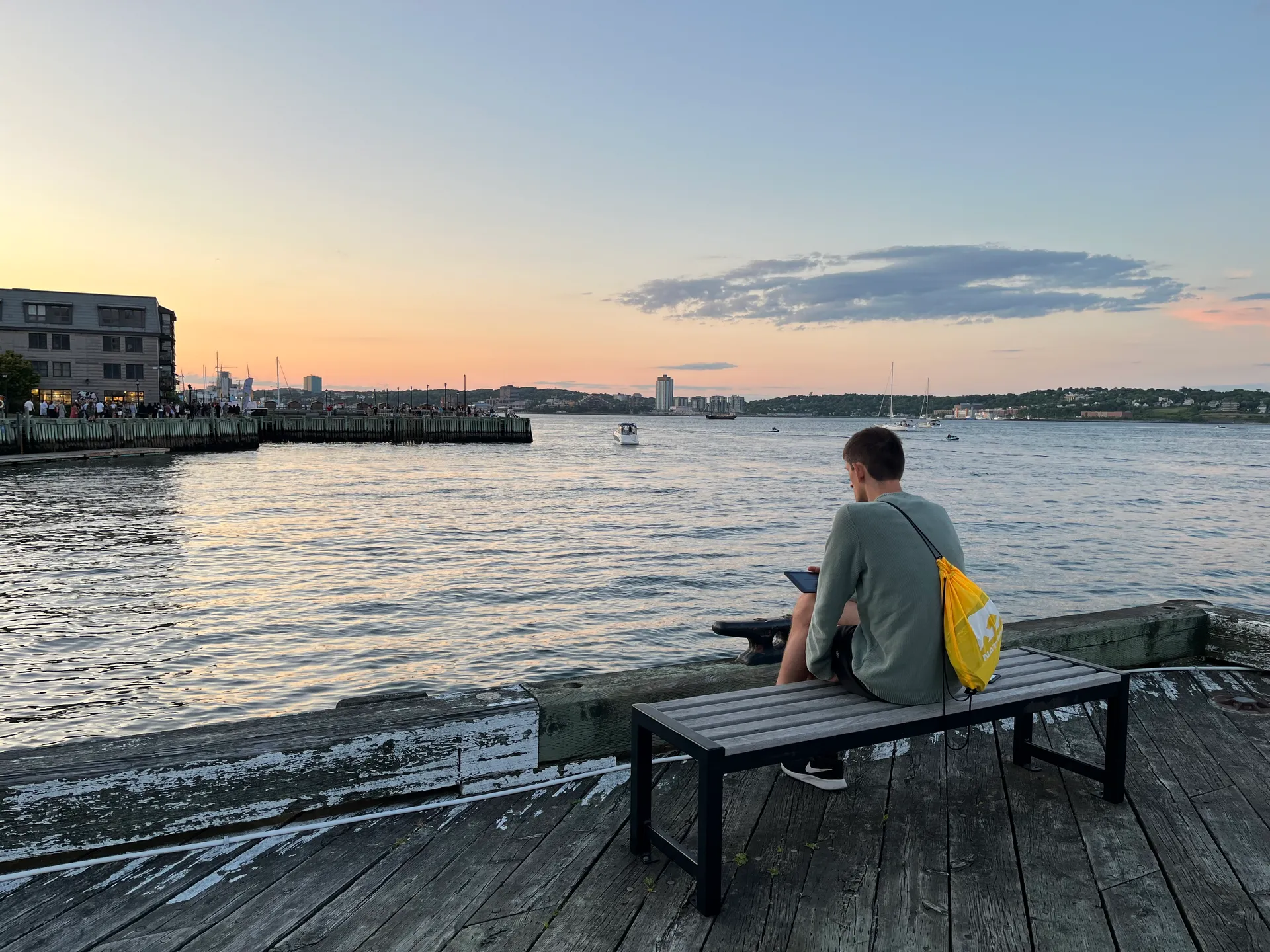 Die Stadt, vor allem aber der Pier am Hafen, ist voll mit Menschen. Das liegt zum einen am grandiosen Wetter und zum anderen daran, dass wir mitten in den Sommerferien nach Kanada gekommen sind. Wir haben uns einfach vom nächsten Stadtplan inspirieren lassen und sind durch die Straßen geschlendert. Man muss also gar nicht viel machen, um in Urlaubsstimmung zu kommen: einfach die Atmosphäre genießen, die Füße im Wasser abkühlen, dem Sonnenuntergang zuschauen und ein Buch rauskramen. Oder im Supermarkt einkaufen und dann Abendessen im Park. Manchmal ist das Leben einfach einfach.
