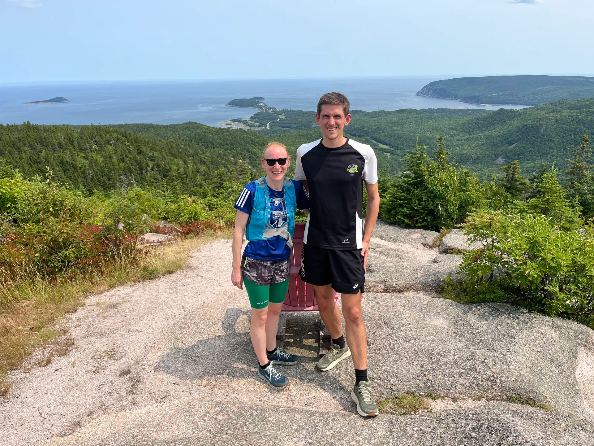 Wir geben das mit dem Laufen auf Wanderwegen nicht auf und machen den Franey Trail. Das Schild am Anfang des Wanderwegs warnt vor Kojoten und Bären, und die eine Hälfte der Runde wird – wie am Visitor Center schon angekündigt – gerade repariert. Das mit den Sperrungen und Reparaturen wird sich weiter durchziehen, das mit den Kojoten und Bären nur im Nationalpark. Wir hoffen, dass sich die wilden Tiere für die etwas reichhaltigere und leichter zu jagende Beute entscheiden, die sonst auf dem Trail unterwegs ist – und nicht gerade für uns. Es geht erst mal hoch, am Stück über 6 km, von fast Meereshöhe auf 470 m. Der Ausblick ist grandios. Auf dem Rückweg geht’s entsprechend bergab. Auf den letzten 2 km ist es nicht mehr so steil, und der Weg so gut, dass man richtig rollen lassen kann. Die Wellen im Gelände geben einem das Gefühl von Achterbahnfahren. Das Wetter passt zu den kanadischen Sommerferien, und nur 10 Minuten nach dem Lauf stehen wir schon am Strand – und das Meer ist gar nicht so kalt.