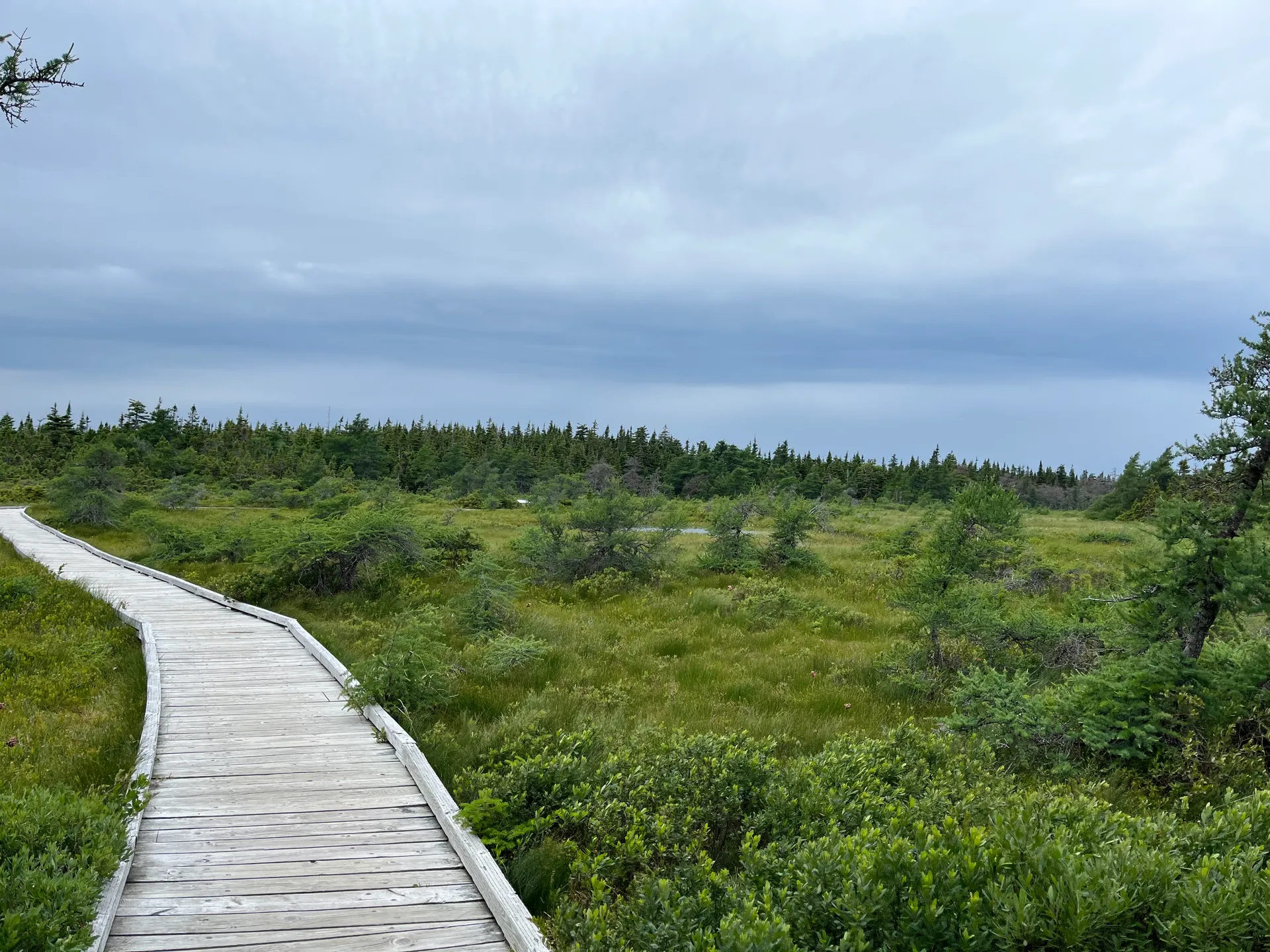 Unser zweiter Campingplatz liegt genau am anderen Ende des Nationalparks. Wir folgen dem Cabot Trail und halten einfach an jedem Aussichtspunkt und jedem kleinen Wanderpfad, der uns interessant vorkommt. Man könnte dem Irrtum erliegen, dass eine Küstenstraße flach ist. Auf dem Cabot Trail mit seinen vielen Steilküsten bewältigt der Panda Steigungen und Gefälle von bis zu 13 %. Die Schubladen bleiben alle zu, und nichts fliegt durch die Gegend. Test bestanden. Noch erstaunlicher sind die vielen Fahrradfahrer, die sich neben den Autos die einzige Straße hochquälen. Unterwegs gibt es viele schöne Aussichten und spannende Natur (fleischfressende Pflanzen) zu entdecken. Teilweise erinnert die Landschaft stark an Skandinavien. Es gibt viele kleine Rundwege entlang des Wegs.