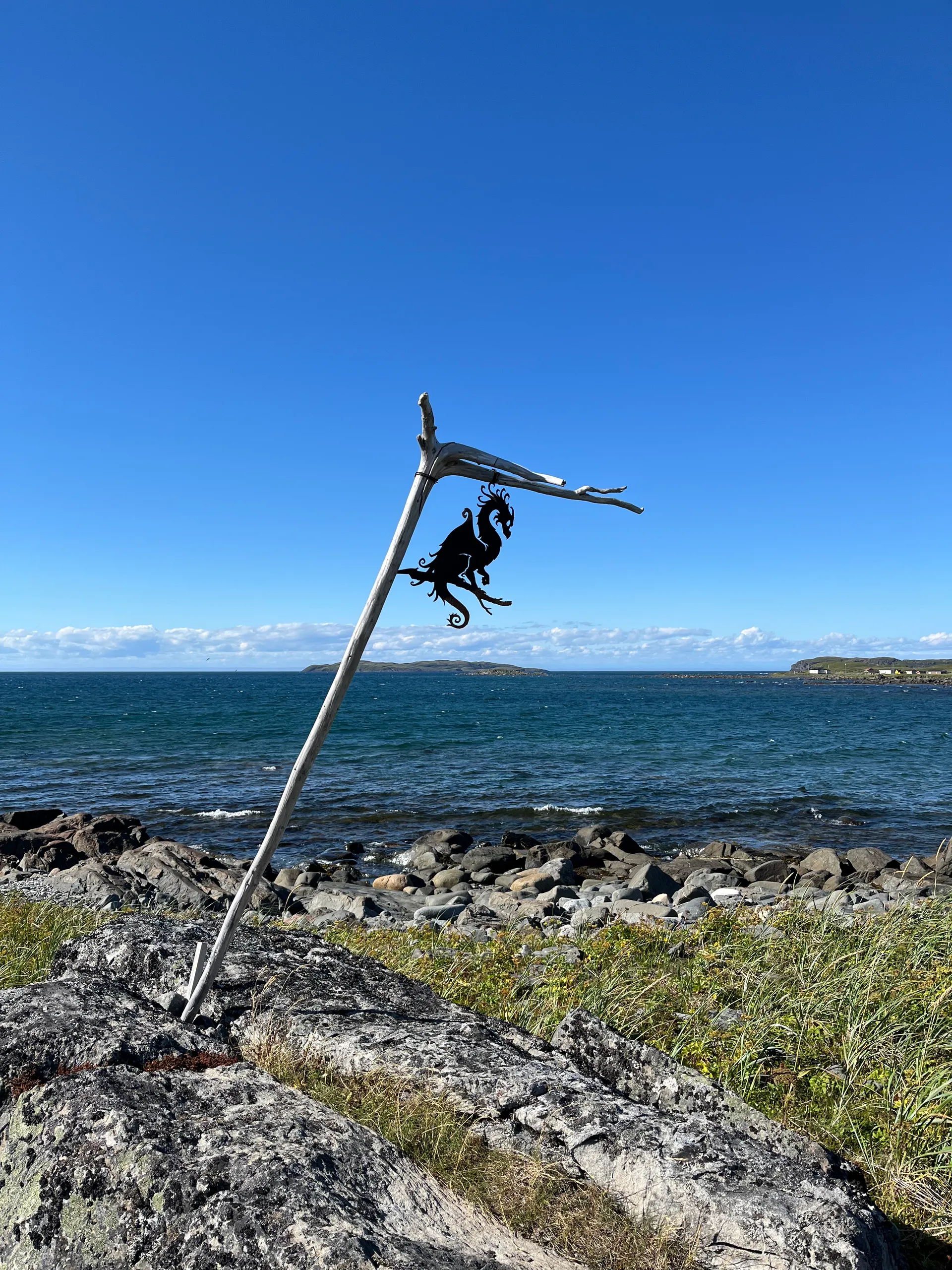 In Port au Coux National Historic Sitegibt es ein sehenswertes Besucherzentrum und tolle Wanderwege. Auf ihnen findet man Informationen zu allen Siedlern der Gegend seit dem Ende der letzten Eiszeit. Das waren vor allem die Innu und Inuit. Wir wandern die große Runde vom Besucherzentrum zum Leuchtturm und wieder zurück. Dabei kommt man an Ausgrabungsstätten und Kunstwerken vorbei und läuft ein gutes Stück direkt am Meer auf den Leuchtturm zu.