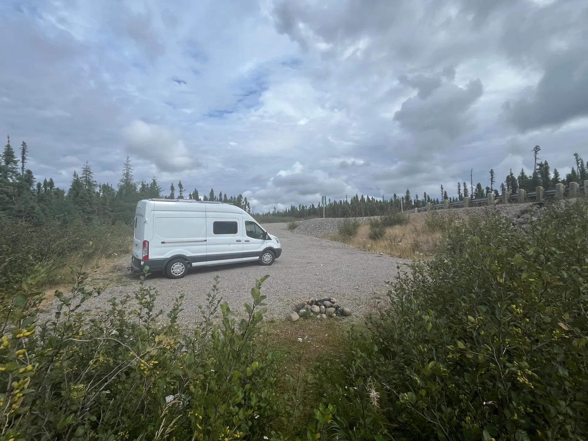 Wie Happy Valley ist auch Labrador City eine richtige Stadt, inklusive eines Ford-Händlers – was für uns ein Glück ist. Circa hundert Kilometer vor Labrador City geht plötzlich die ABS-Warnleuchte an, und der Tempomat sowie die Einparkhilfe fallen aus. Das Auslesegerät zeigt, dass die Geschwindigkeitsmessung hinten links defekt ist. Ob es der Sensor oder der Ring ist, können sie uns aber nicht sagen. Zeit für eine Reparatur gibt es leider auch nicht. Wir können aber zunächst weiterfahren; solange kein Schnee liegt, sollte das kein Problem sein. Der recht junge Techniker war zudem schwer begeistert von einem Ford Transit mit manueller Schaltung – so etwas hatte er bisher auch noch nicht gesehen.