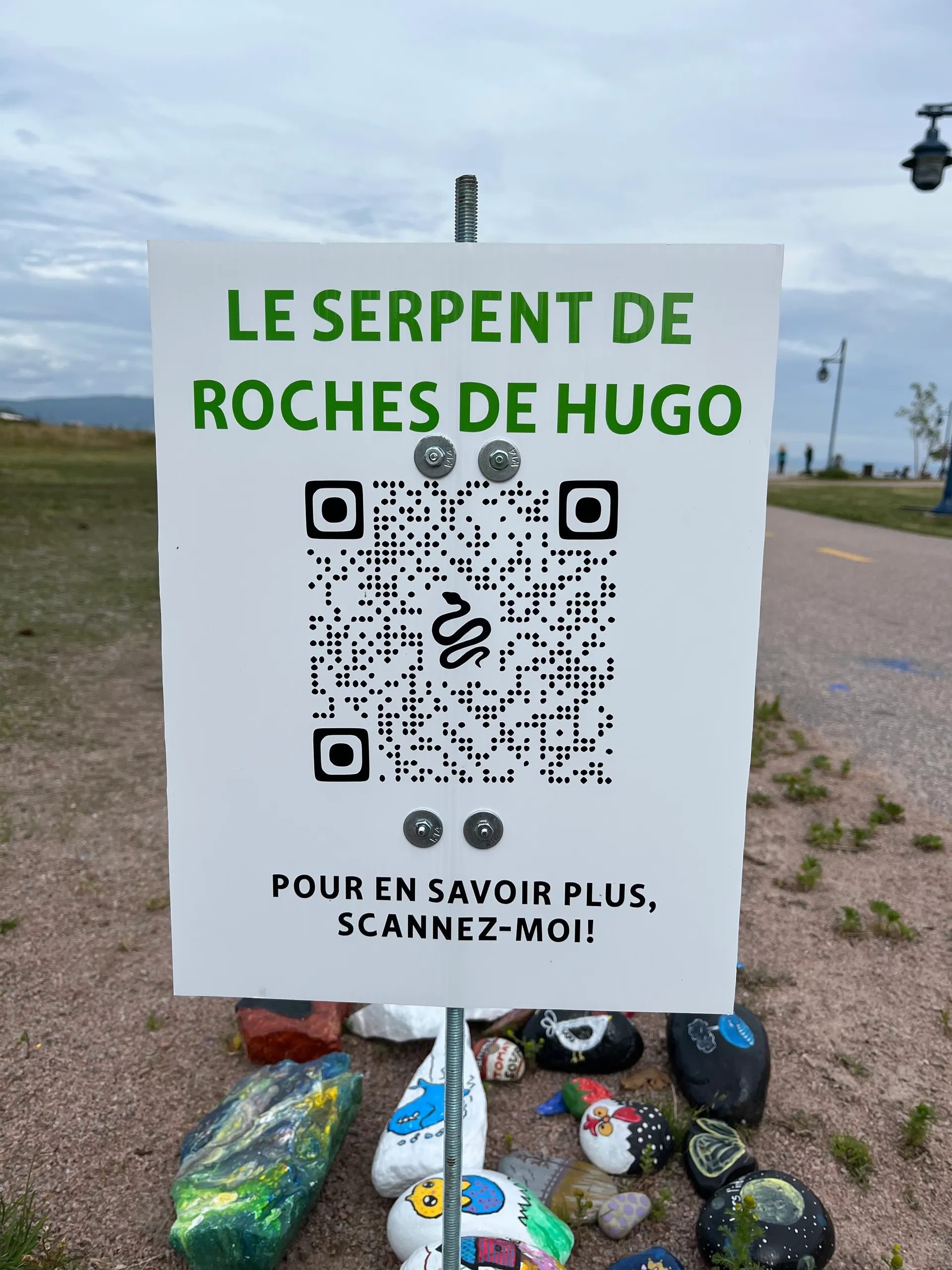 Hugo Jobin und seine Mutter starteten die Schlange 2024 während seiner Krebsbehandlung. Hugos Ziel war es, die längste Steinschlange Kanadas zu bauen. Die Schlange besteht aus bunt bemalten Kieselsteinen. Kurze Zeit später stieg die gesamte Gemeinde mit ein, und so wuchs die bunte Schlange auf eine Länge von über 26.000 Kieselsteinen an und brach nicht nur den kanadischen, sondern gleich den nordamerikanischen Rekord.